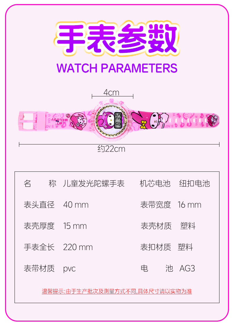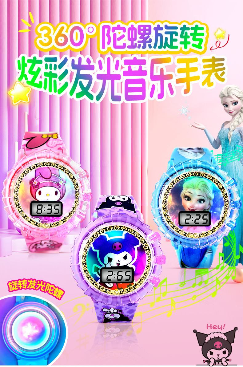 新型照明音楽児童腕時計回転可能ジャイロ電子時計サンリオ漫画学生玩具時計クロスボーダー