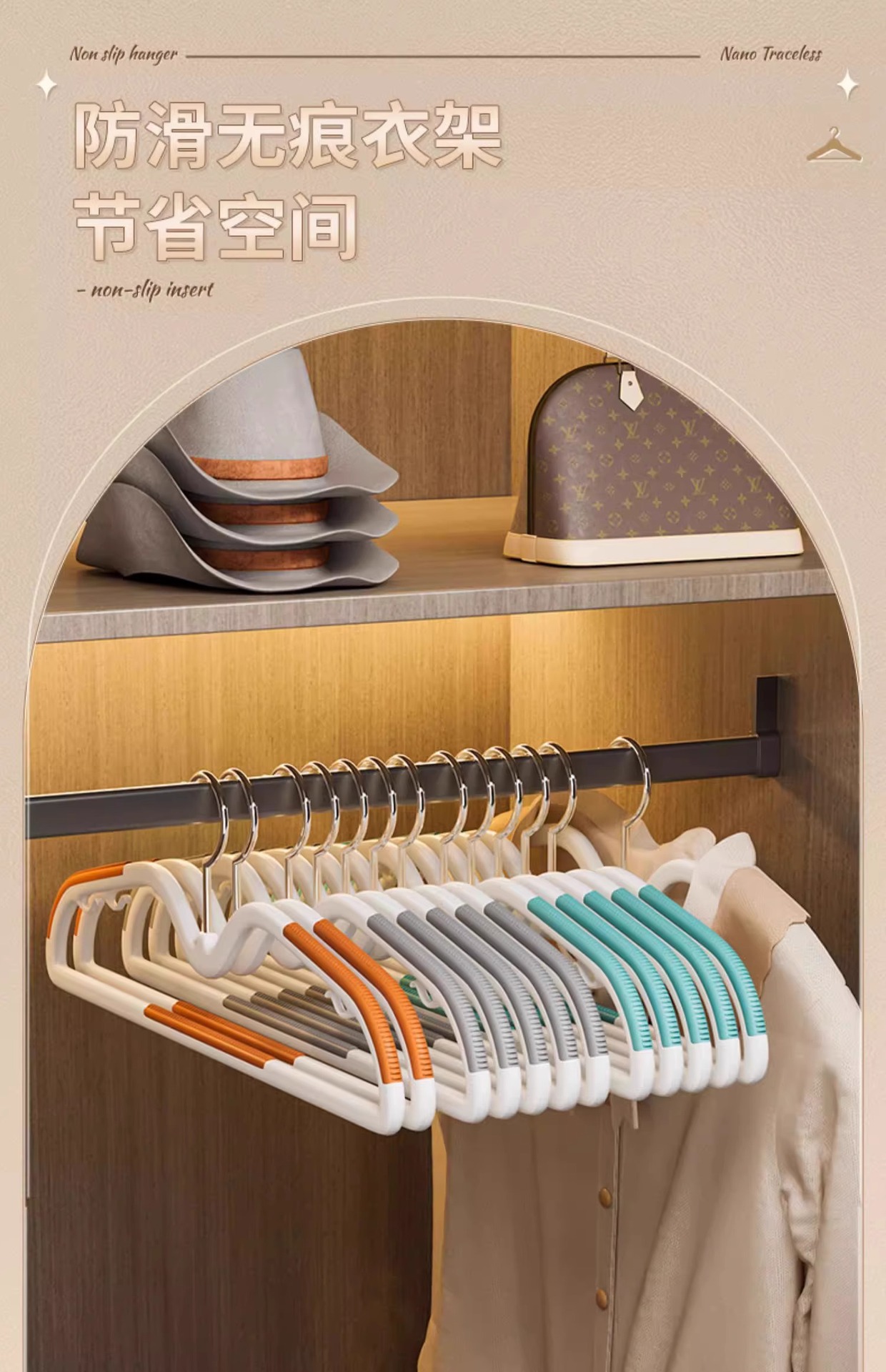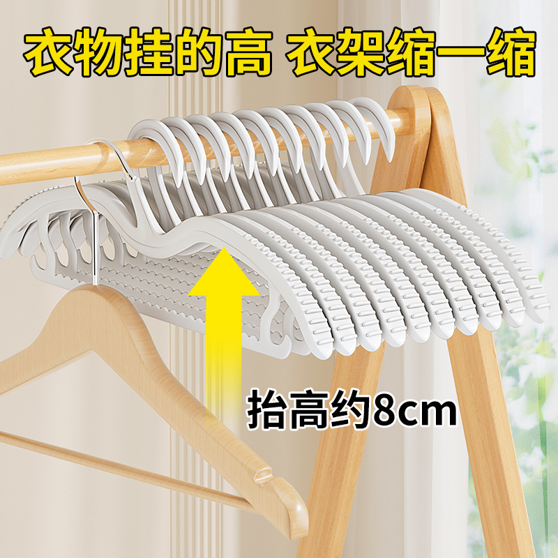 新品ショート首ハンガー滑り止め無痕低首プラスチックハンガーM型超低省垂直スペース防鼓バッグ