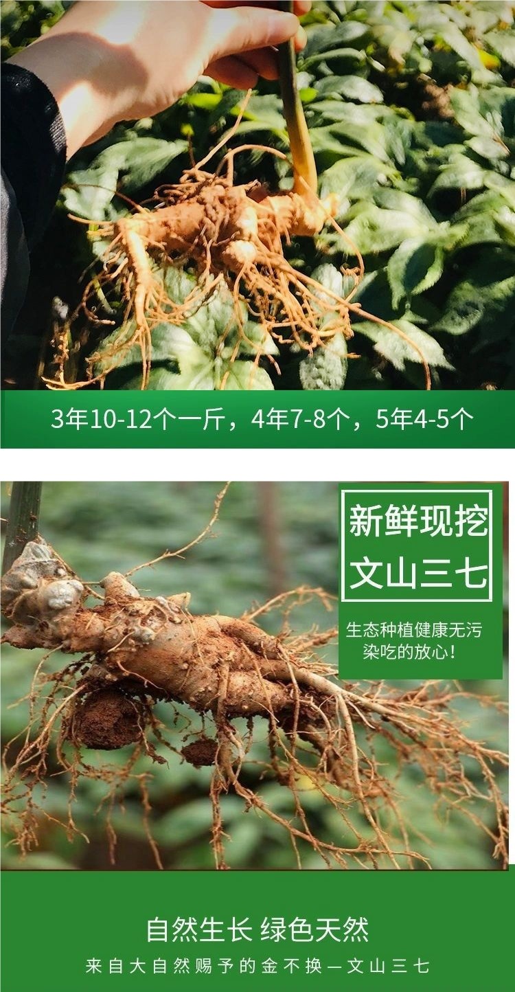 三七云南文山三七头无剪口滑头田七20头30头40头60头春三七产地直