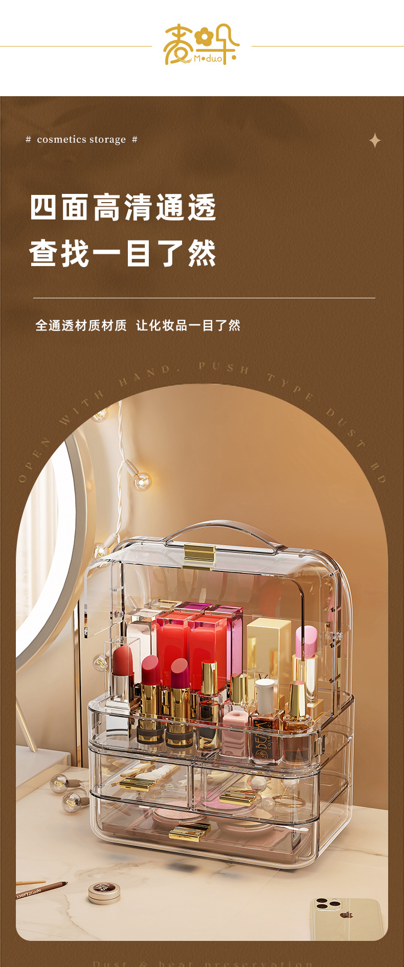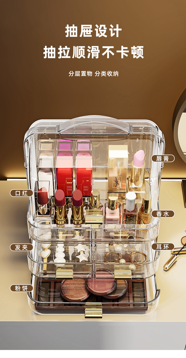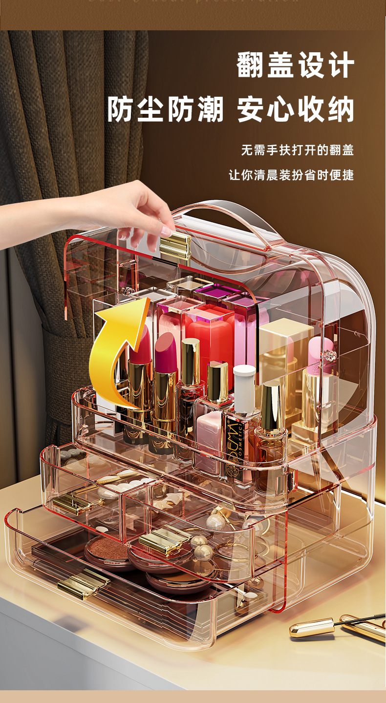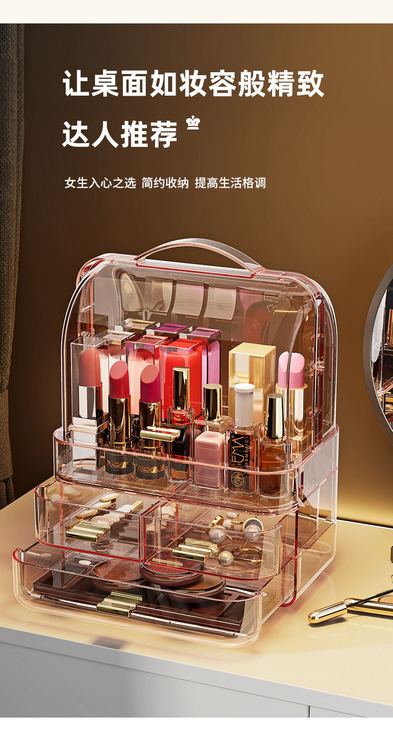 手提げ化粧品収納ボックス引き出し式収納ボックス防塵棚デスクトップ整理ボックススキンケア収納ボックス