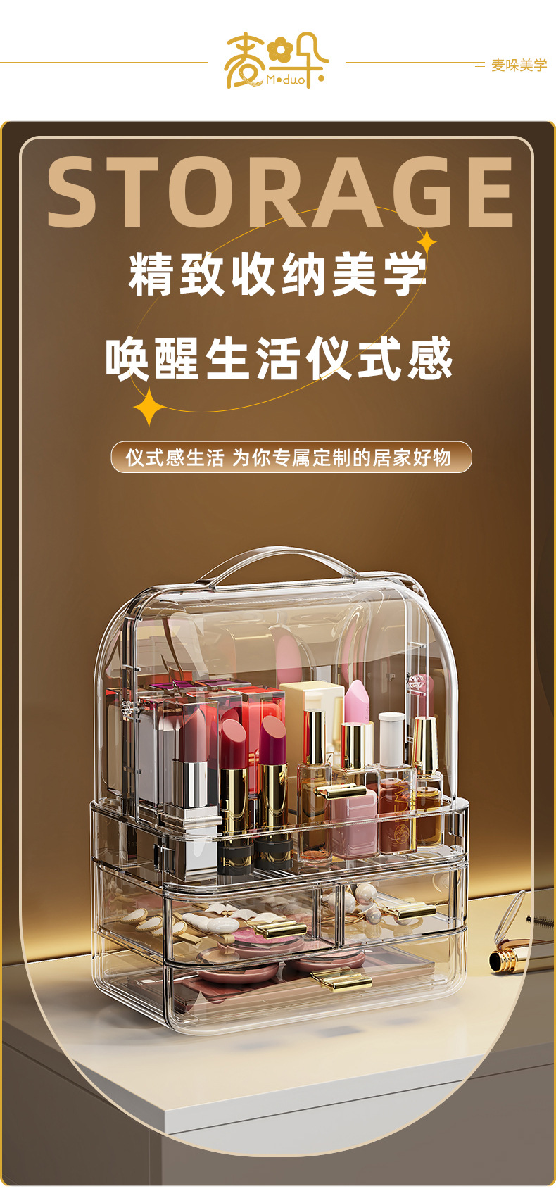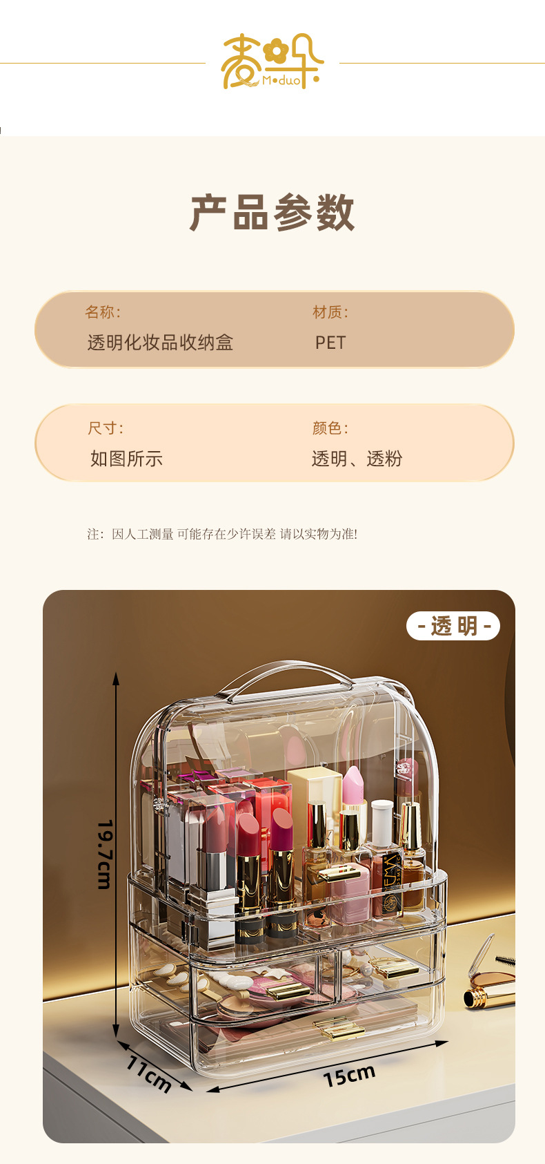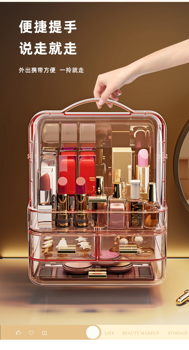 手提げ化粧品収納ボックス引き出し式収納ボックス防塵棚デスクトップ整理ボックススキンケア収納ボックス