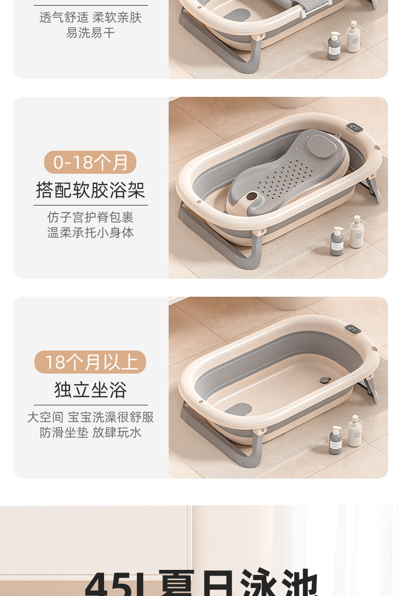 跨境婴儿洗澡盆浴盆宝宝可折叠幼儿坐躺浴桶小孩家用新生婴儿用品