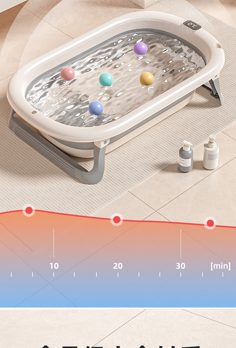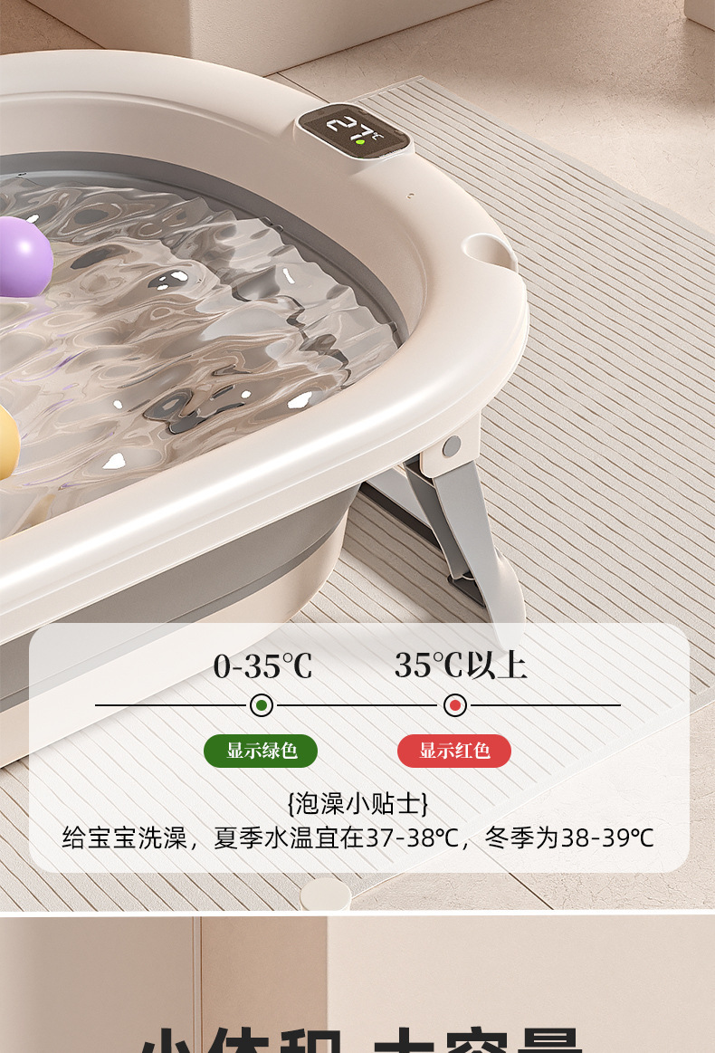 新生児用ベビーバス、折りたたみ式、座ったり寝転んだりできる、家庭用、乳幼児・子供向け、温度感知機能付き