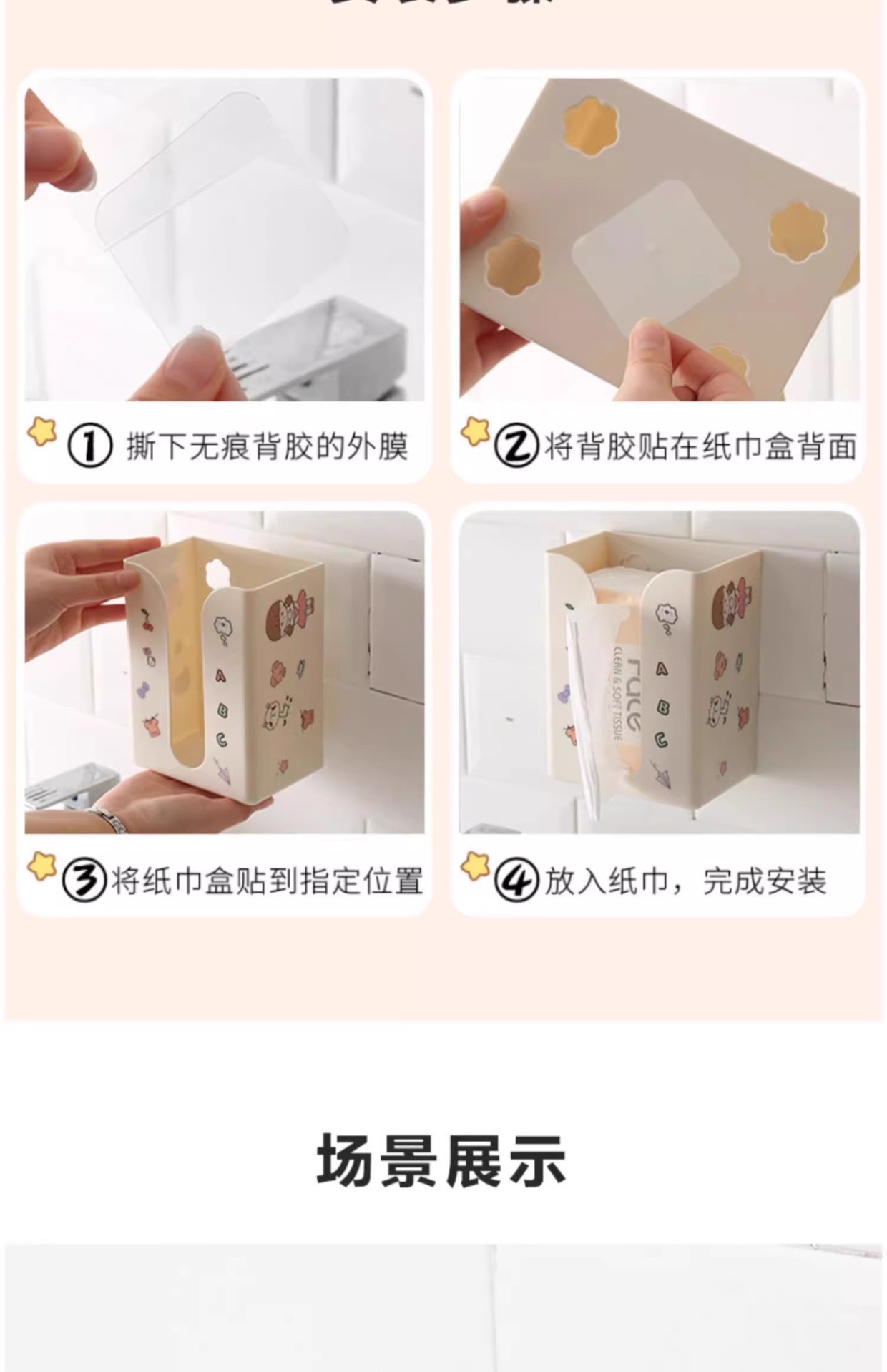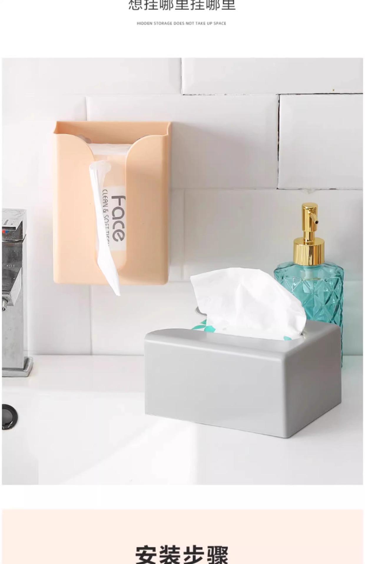 壁挂式纸巾盒挂壁倒挂收纳抽取家用客厅厨房卧室卫生间免打孔无痕