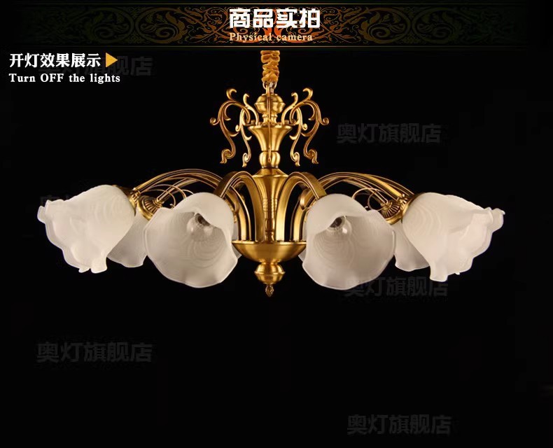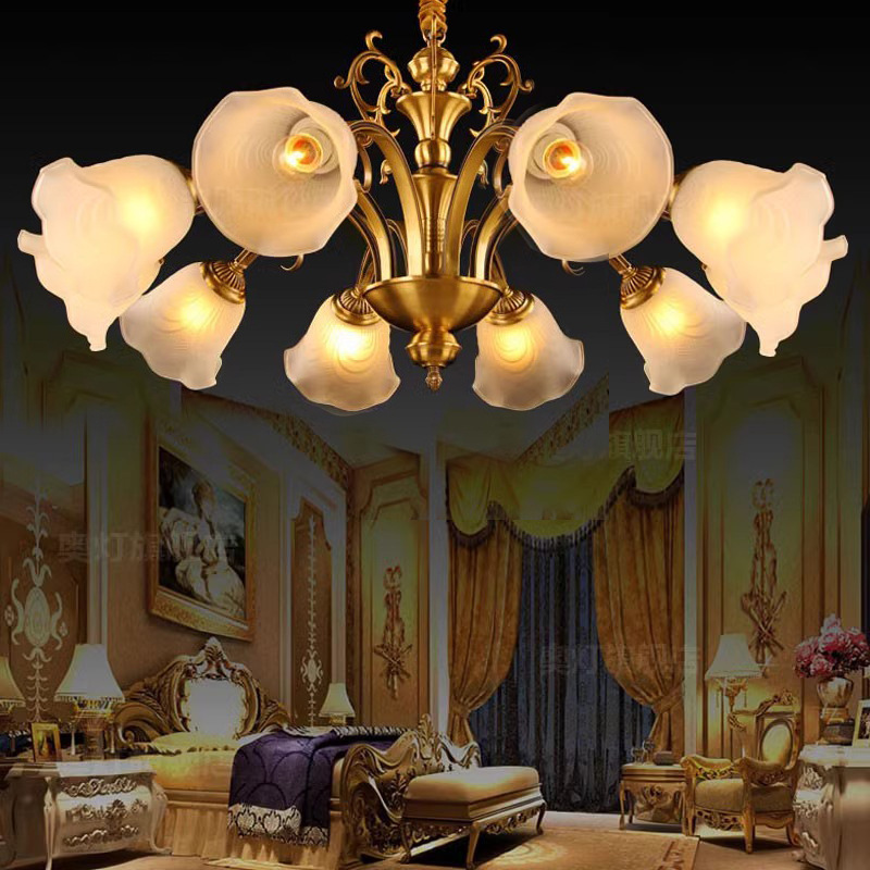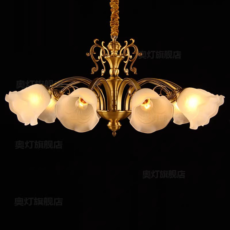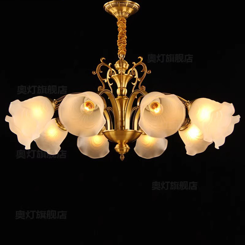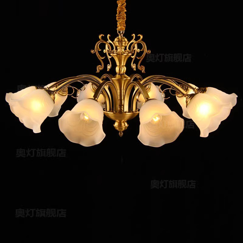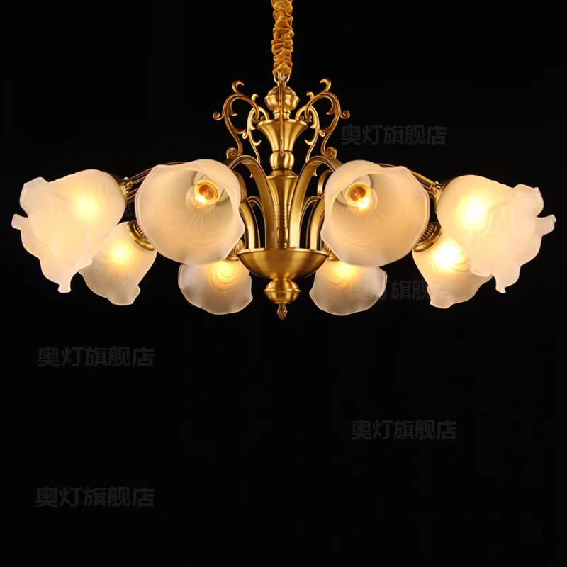 アメリカンレトロな雰囲気のリビングルームランプ、ハイエンドのヨーロピアンスタイルの高級ヴィラ、レストラン、寝室、書斎、クリスタル全銅シャンデリア