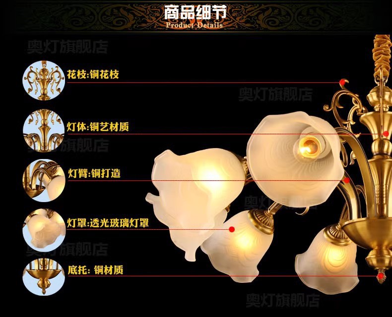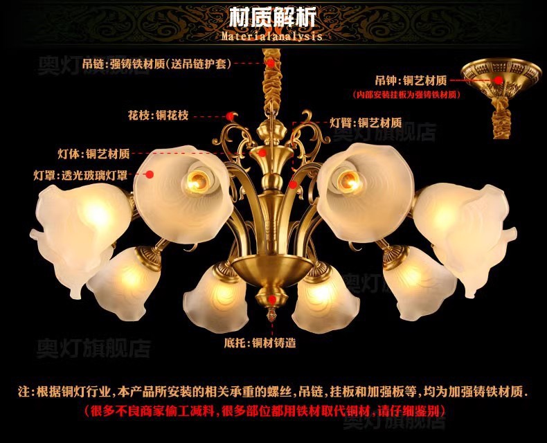 アメリカンライト高級全銅レストランランプシャンデリアバーランプシンプルモダンクリエイティブダイニングルームベッドルームベッドサイドランプ66727