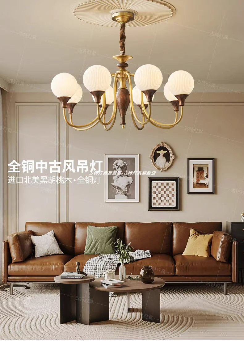 全銅アメリカンシャンデリアリビングルームランプレトロリビングルームシャンデリア2025フレンチミッドセンチュリースタイルモダンアメリカンカントリーシャンデリア