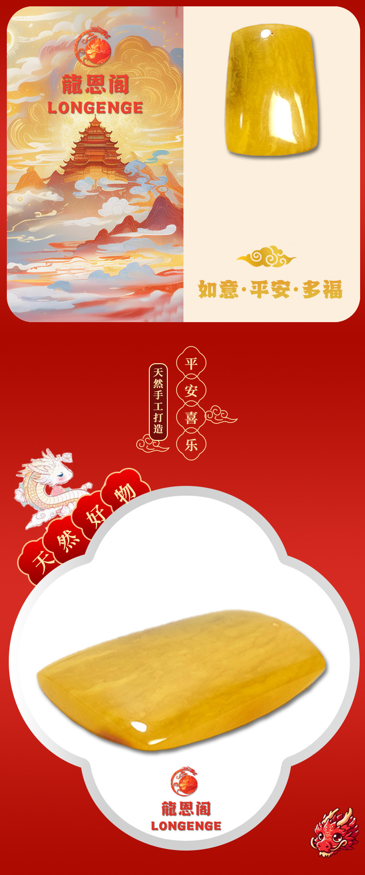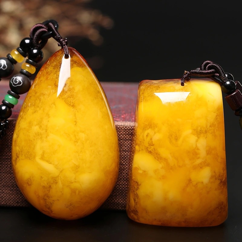 天然真货波罗的海原矿直切琥珀蜜蜡鸡油黄雕刻件吊坠项链挂坠配饰