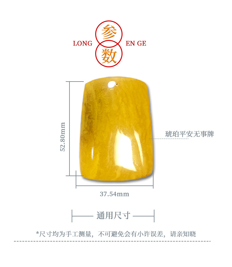 琥珀のブランドは長さ約52.80mm、幅約37.54mmです。
