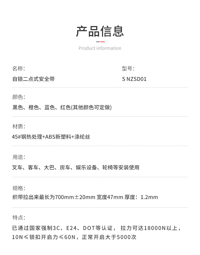 シートベルトメーカー卸売り小額卸売り高品質警報付きフォークリフト各種車用シートベルト