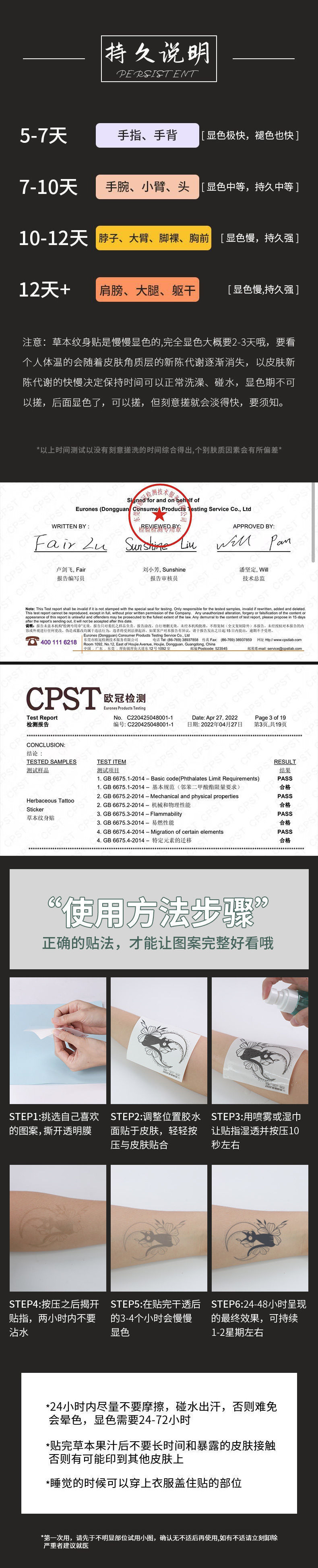 サイズ ハーブタトゥーステッカー 11*18cm
