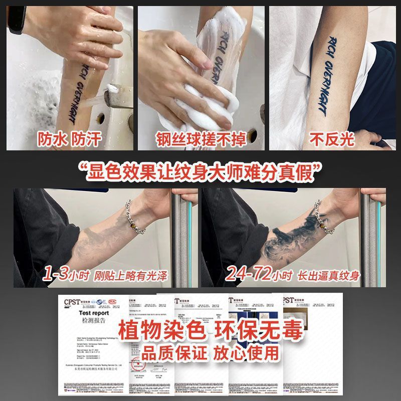 ネイルリムーバー、ハーフアームタトゥーステッカー、防水、女性用、長持ち、男性用、無反射、模擬タトゥージュース