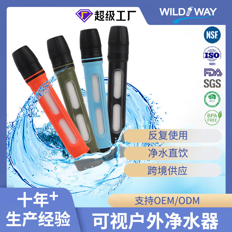 跨境便携户外净水直饮吸管可视窗过滤器野外应急超滤净水器定制