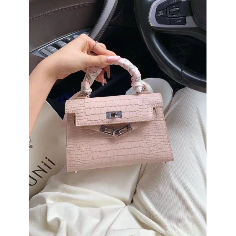 ▪ ケリーバッグ ピンク ミニ クロスボディバッグ レディース ファッション 多用途 クロコダイル レザー スイート ハンドバッグ