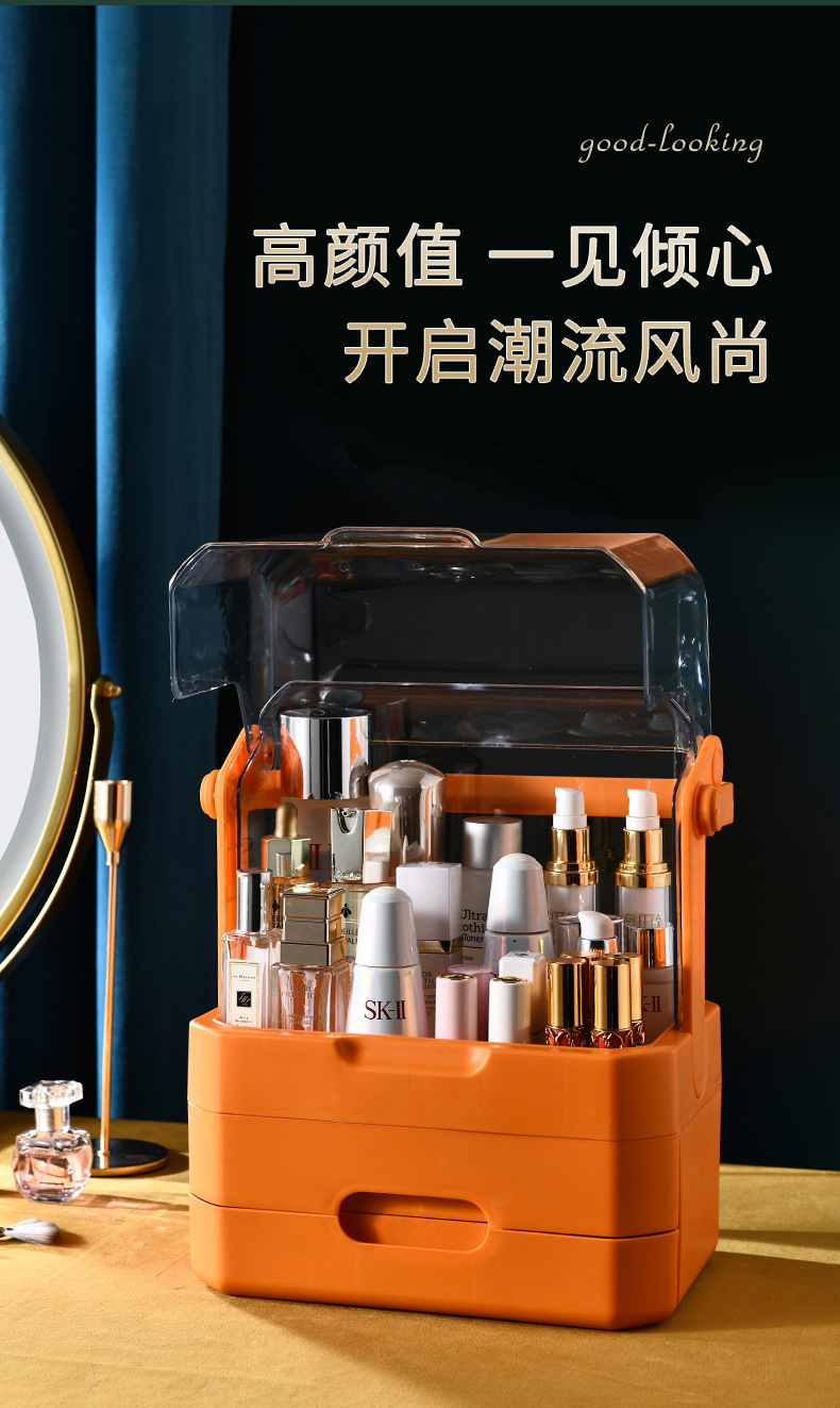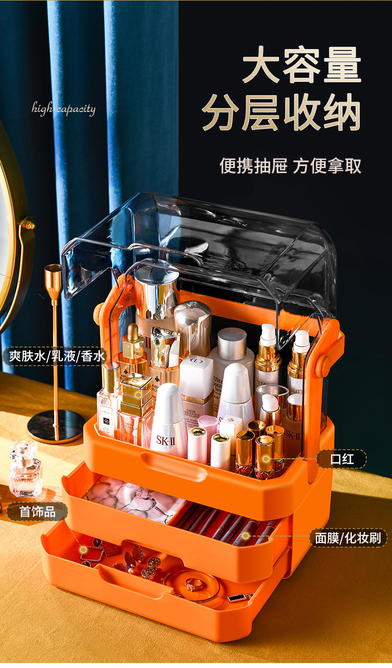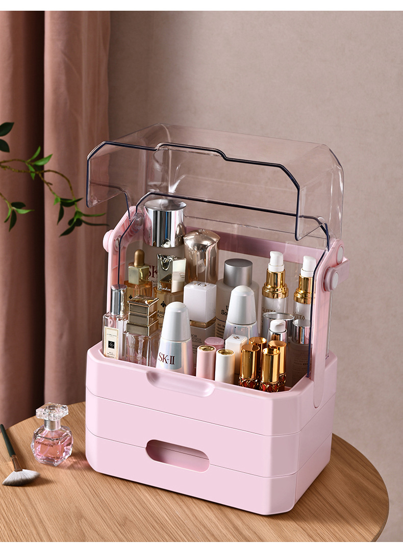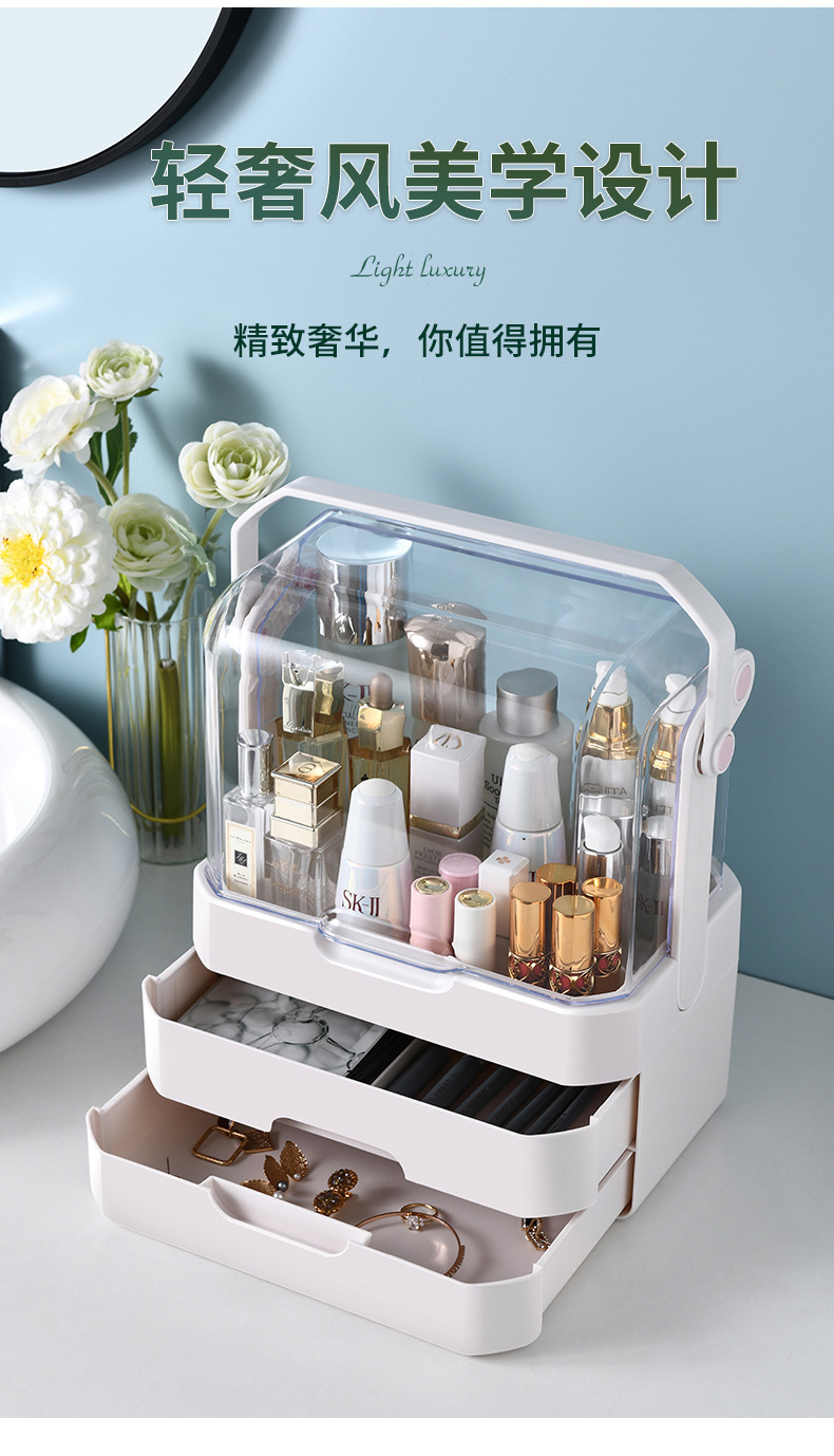 手提げ化粧品収納ボックス引き出し式収納ボックス防塵棚デスクトップ整理ボックススキンケア収納ボックス