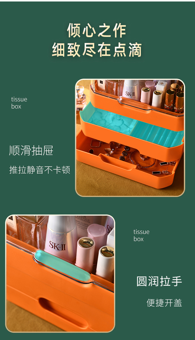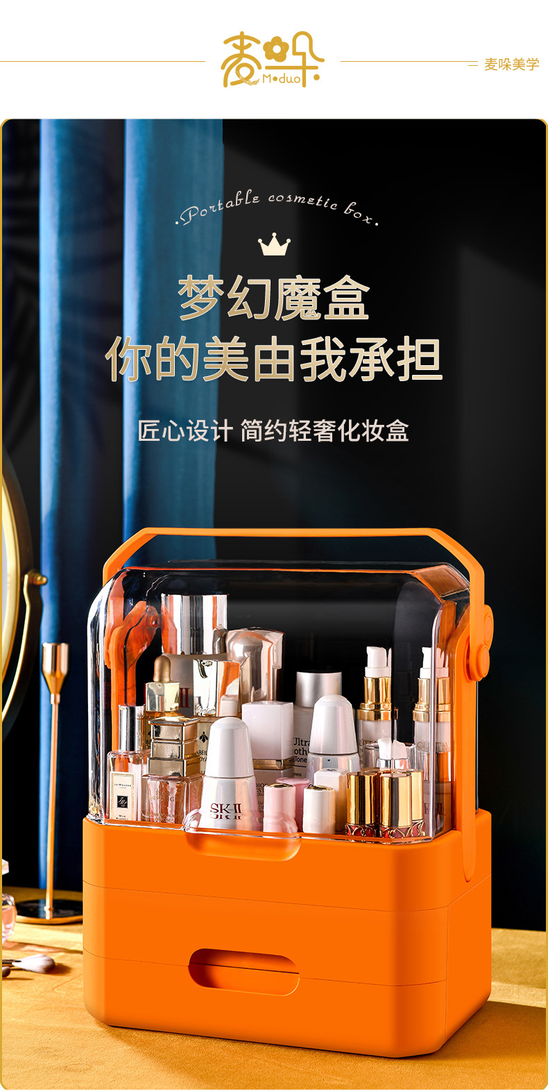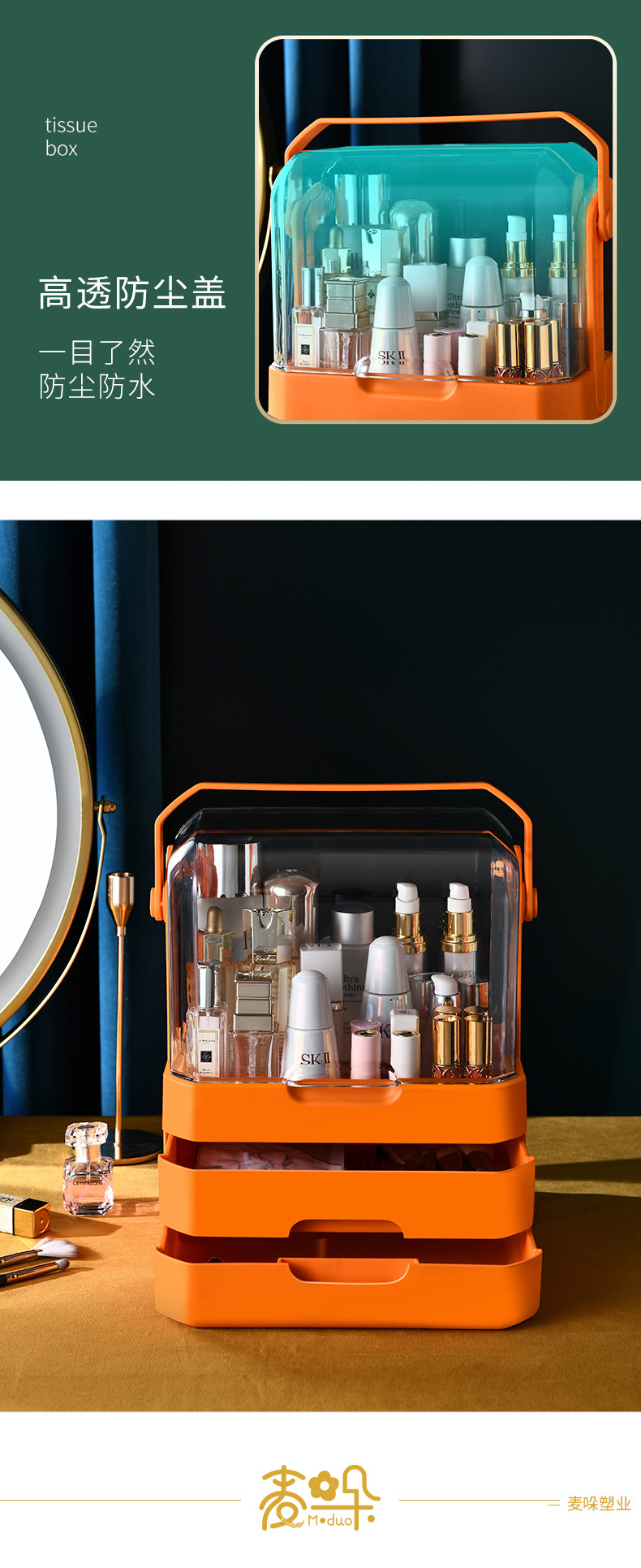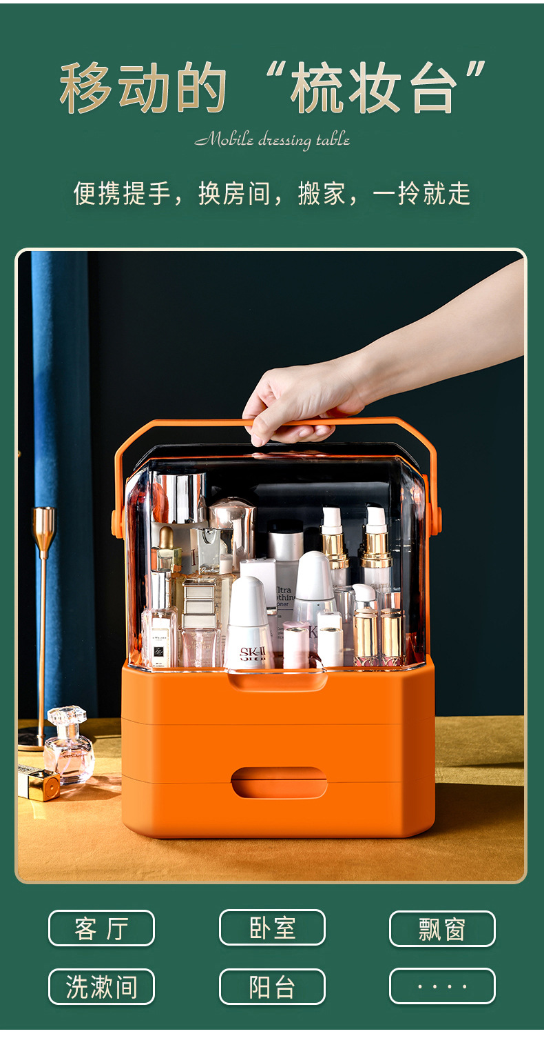 手提げ化粧品収納ボックス引き出し式収納ボックス防塵棚デスクトップ整理ボックススキンケア収納ボックス