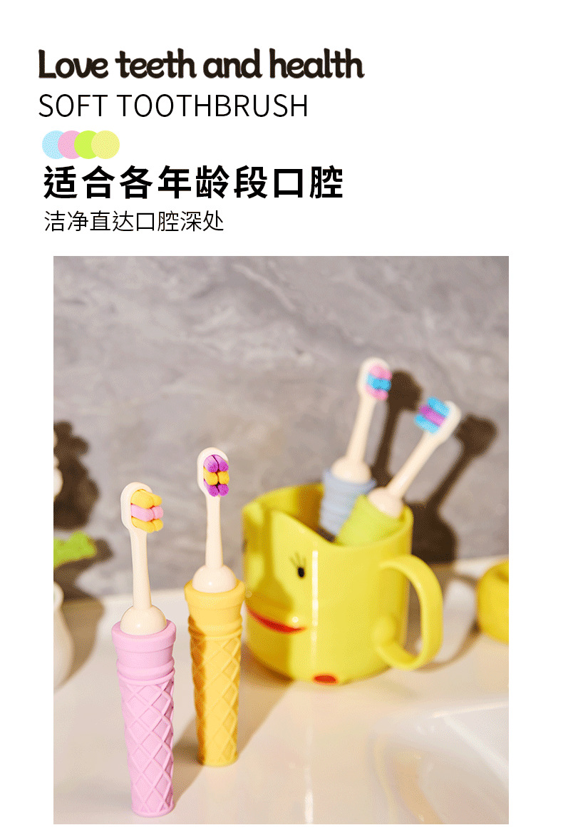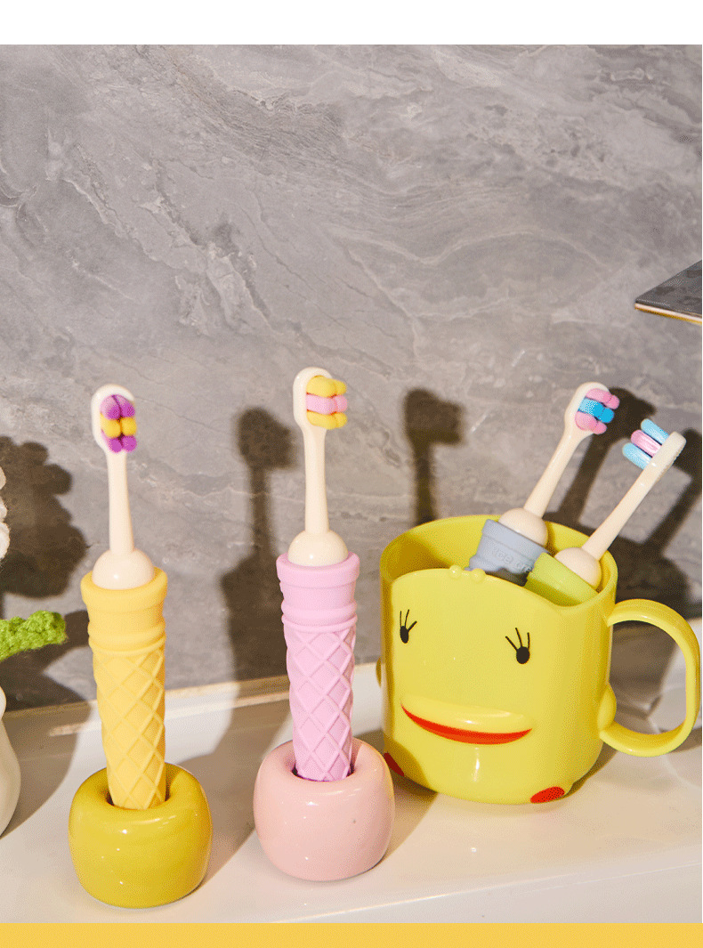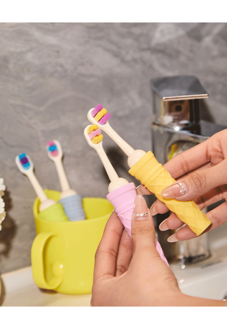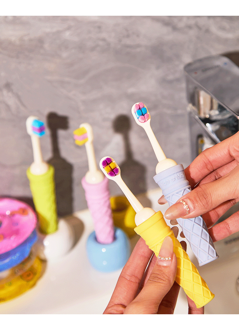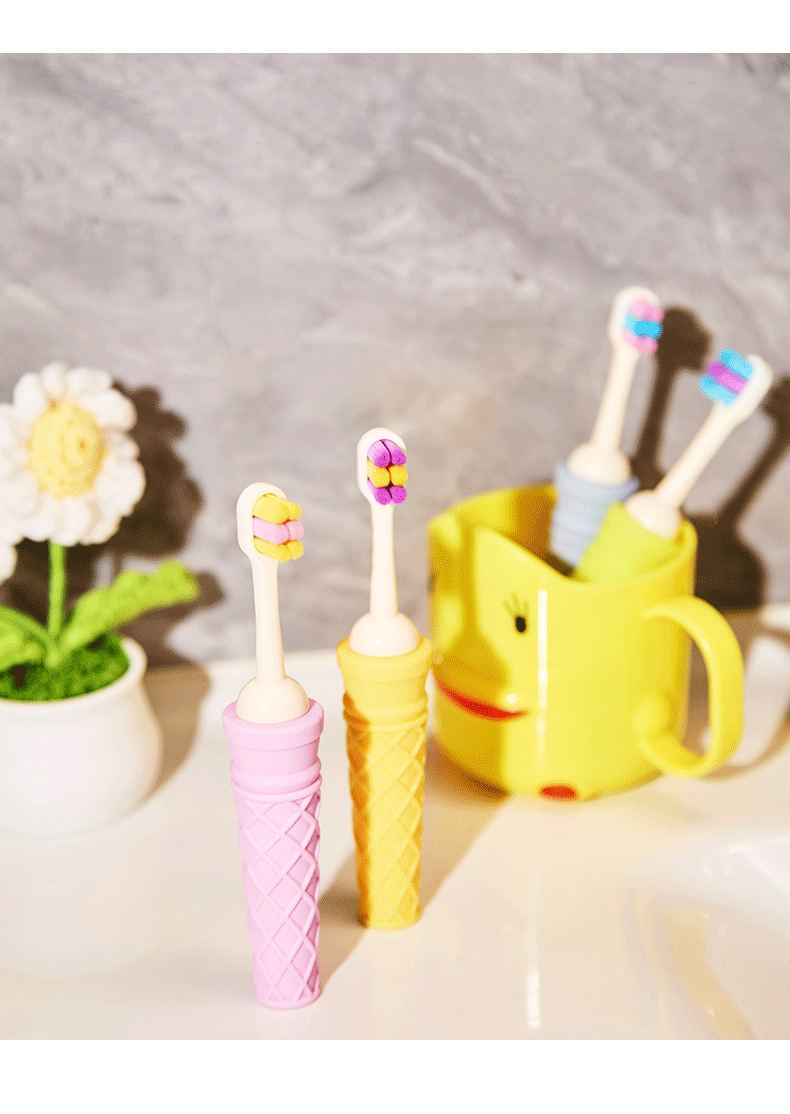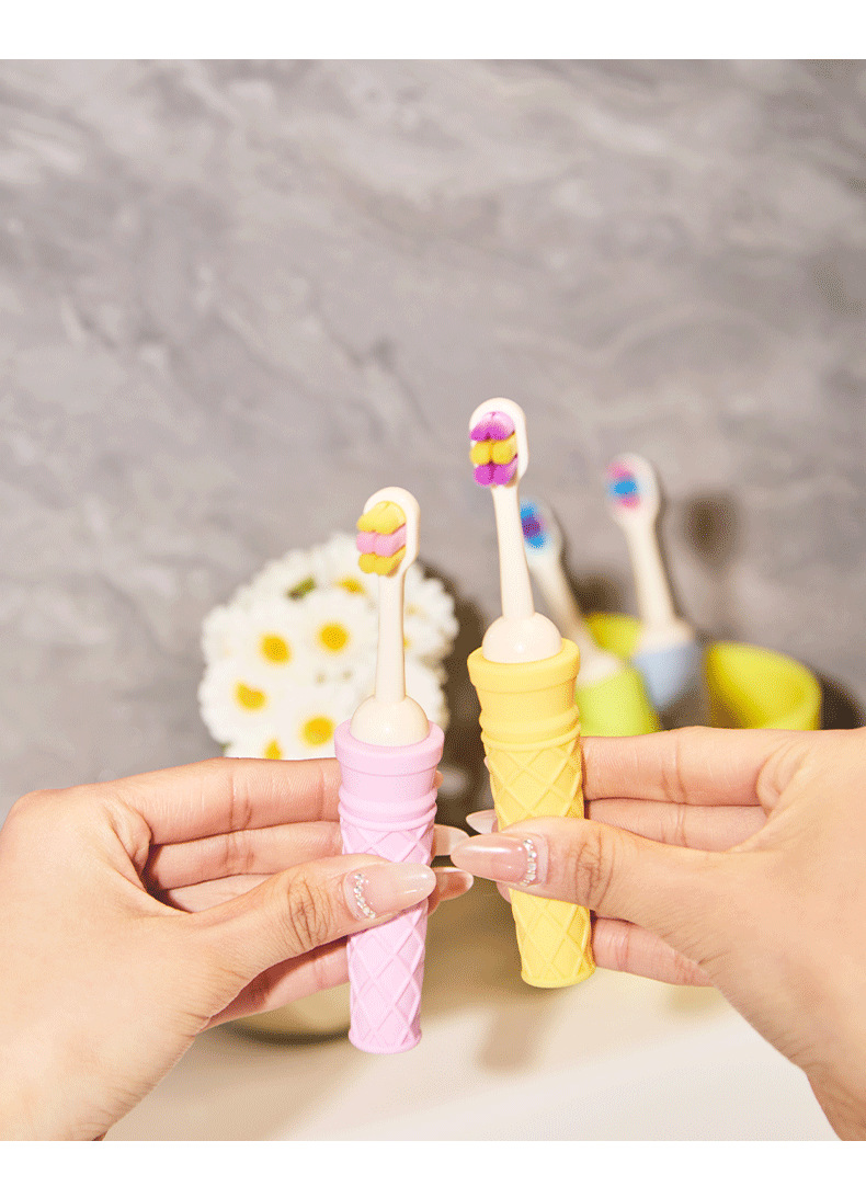 3~12歳の子供用アイスクリームコーン、子供用柔らかい毛歯ブラシ、歯のクリーニングと歯ぐきの保護、ポータブルストレージコーン歯ブラシメーカー