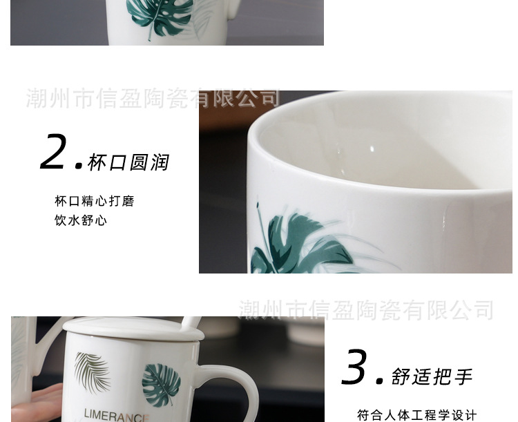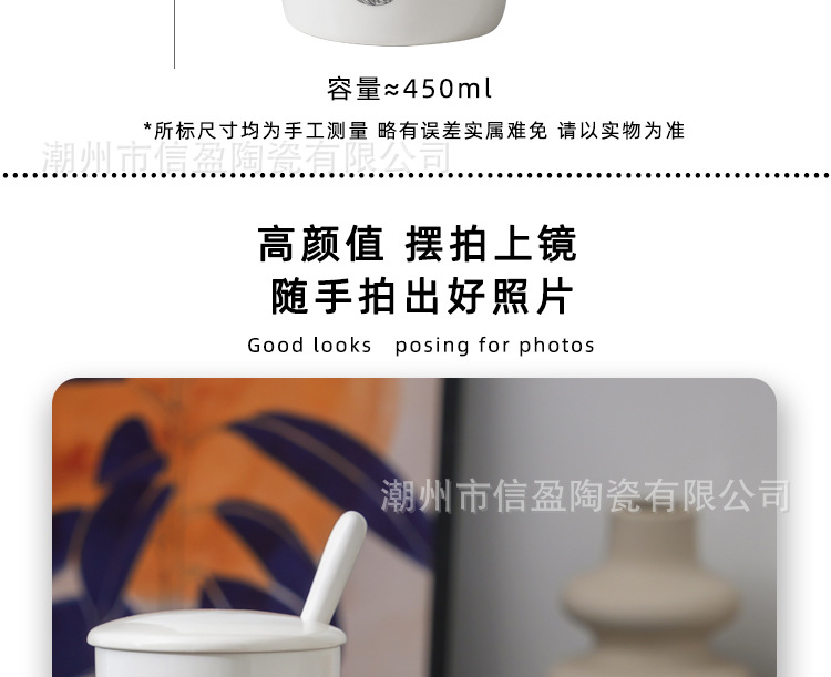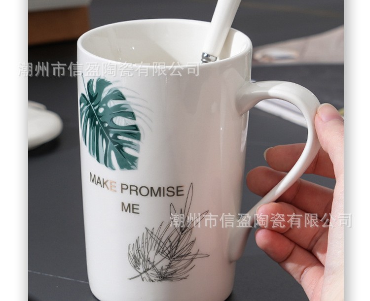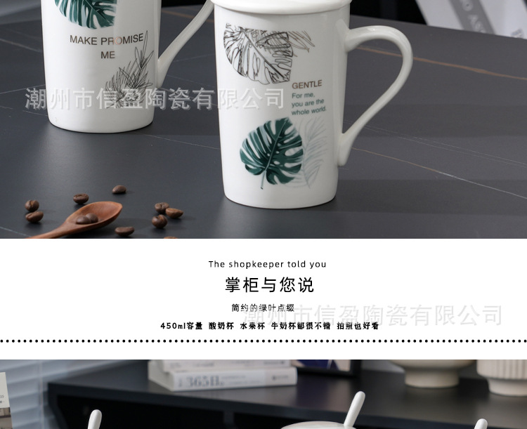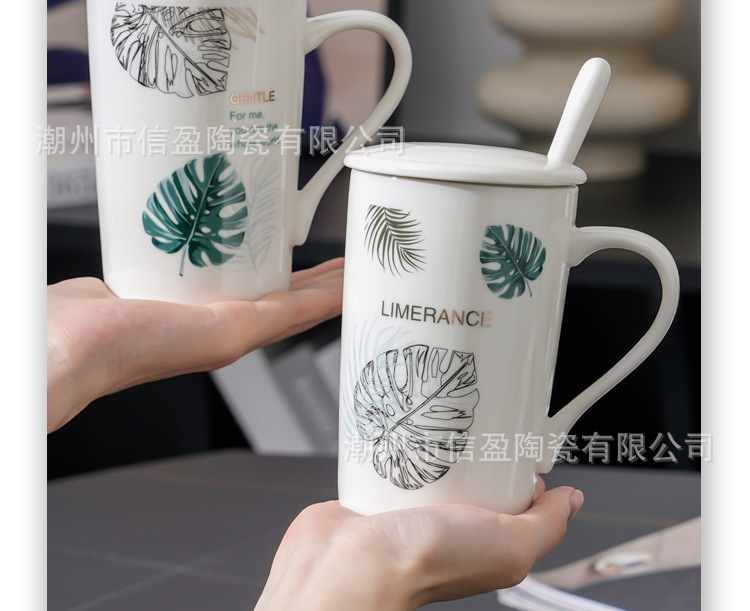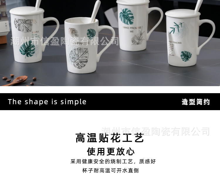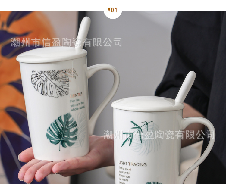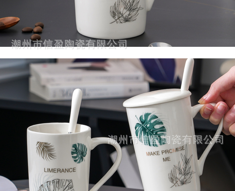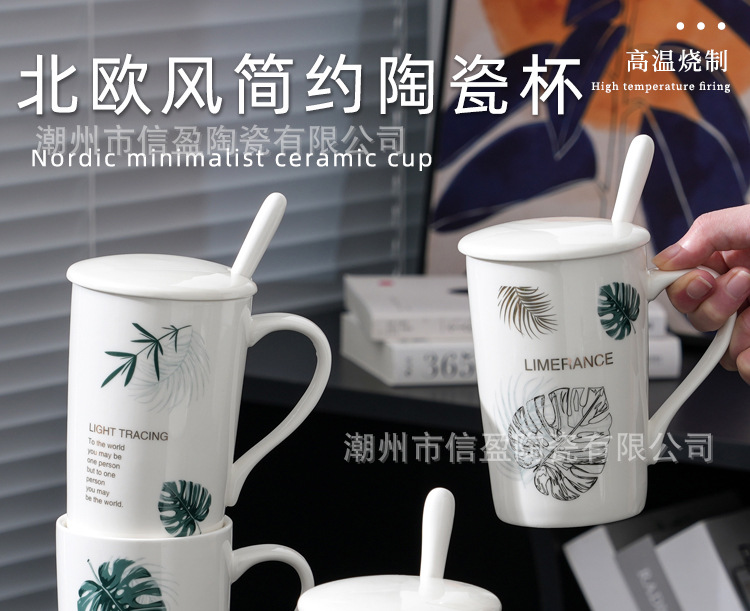 シンプルなマグカップコーヒーカップ蓋付きスプーン付きセラミックカップカップルカップ女性オフィスカップ男性家庭用