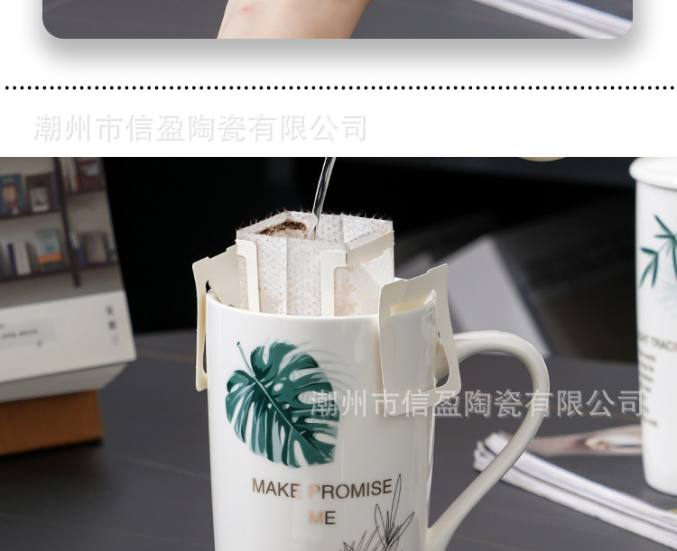 クロスボーダー茶水分離カップ木柄ハンドル陶磁器カップコーヒーカップマグカップ蓋付きスプーンセット