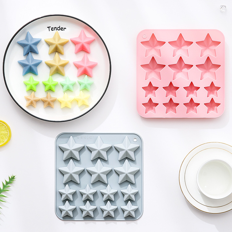 现货 14连不同大小五角星造型硅胶模具烘焙巧克力模滴胶蛋糕模具