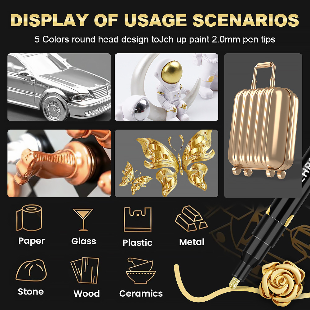 金属色鏡面クロムメッキマークペンハイライト塗装ペンdiyモデル塗装補色防水金属ペン卸売り