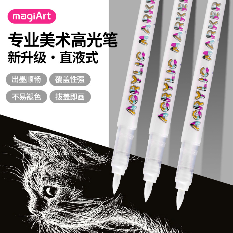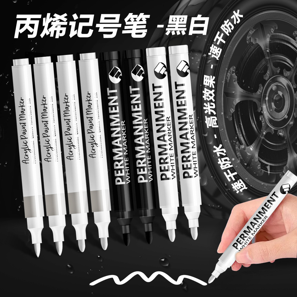 ハイライトペンブラックホワイトアクリルマーカーソフトヘッド防水速干美术専用絵画纸诘まりペンキマークペン