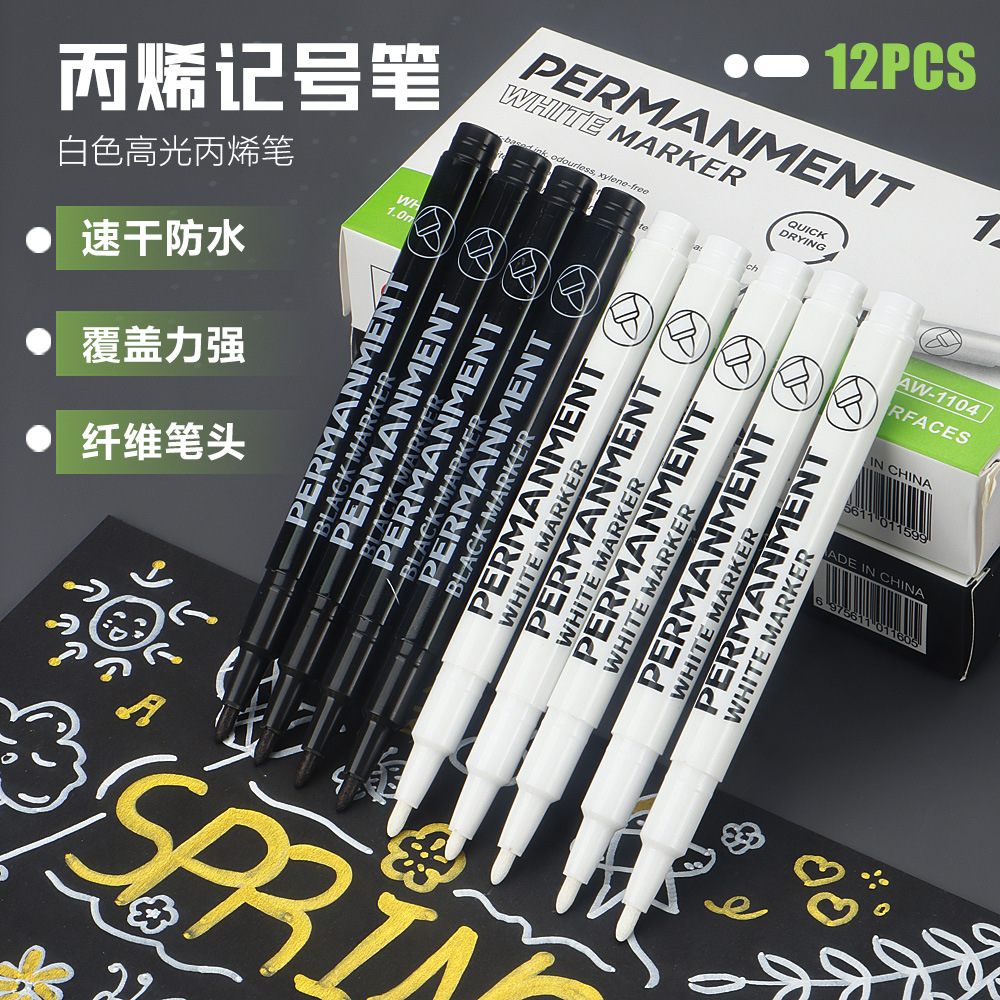 ホワイト高光沢アクリルペン速乾性防水非退色マーカーペン強力なカバー力学生マーキング落書きマーカーペン