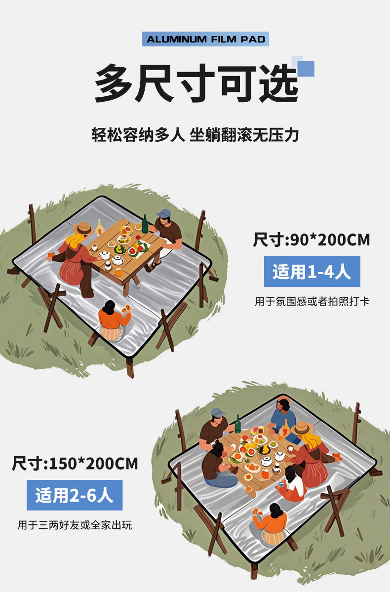 户外双面铝膜防潮垫野餐垫双人多人沙滩垫野营帐篷地垫加厚野餐垫