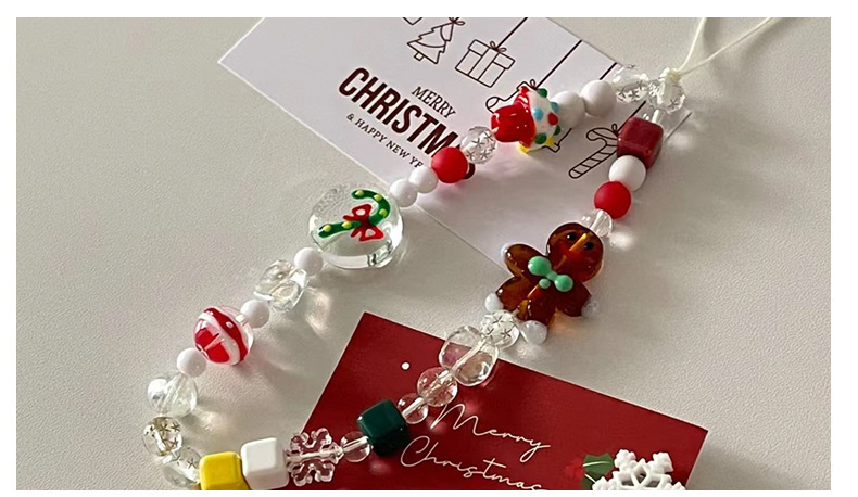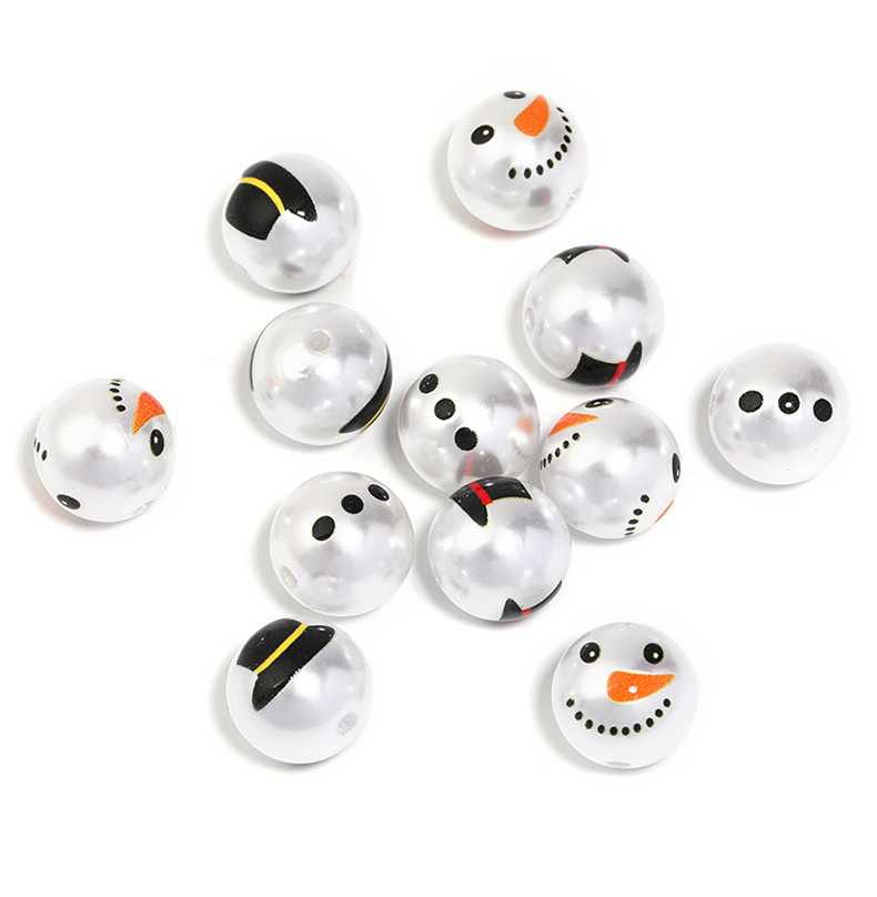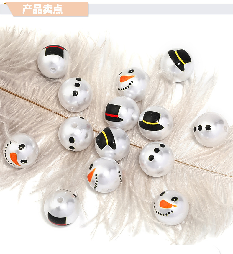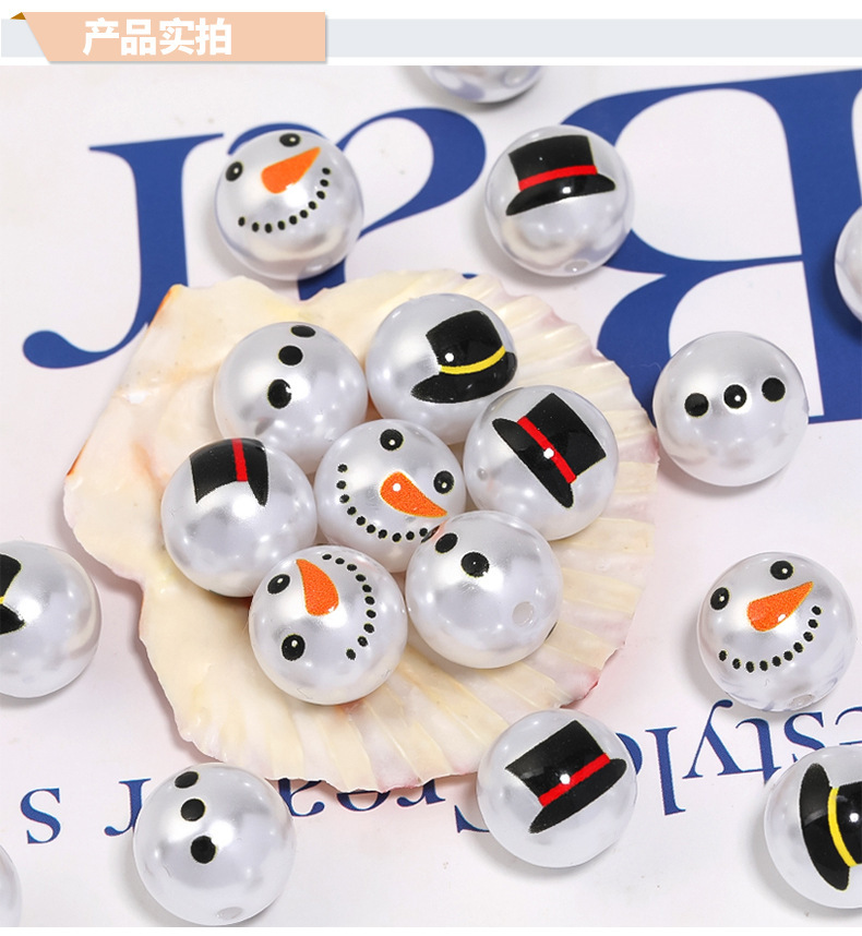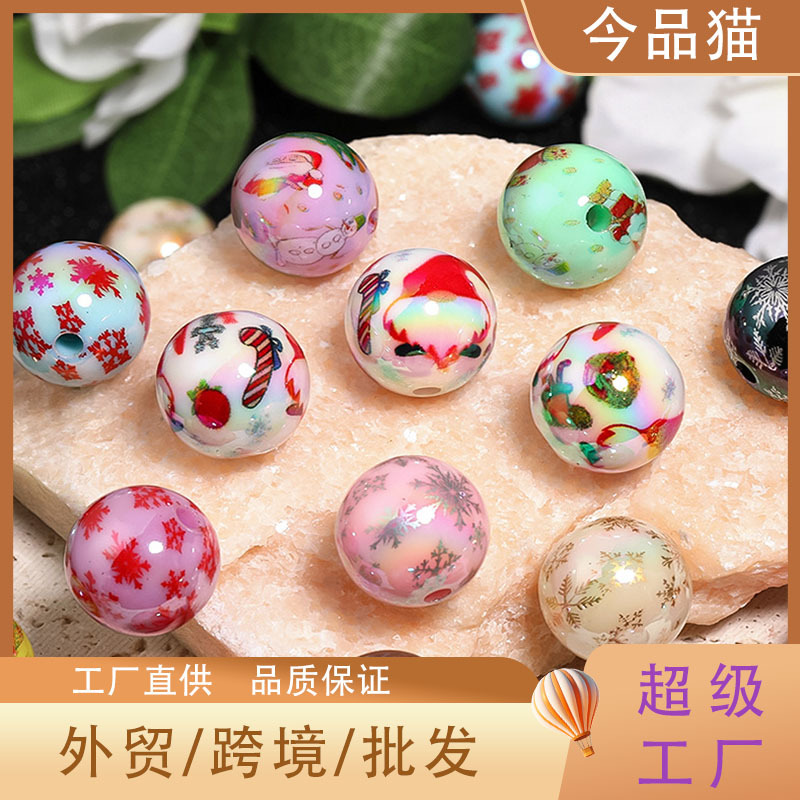 新しいアクリルクリスマスビーズカラープリントビーズファッションdiy携帯電話チェーンキーホルダー散珠卸売り