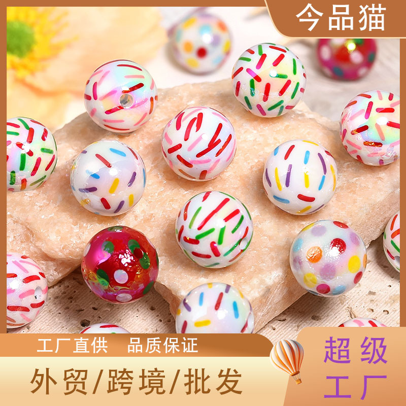 新款节日派对彩带印花圆珠彩色波点串珠diy手机链串珠笔饰品配件