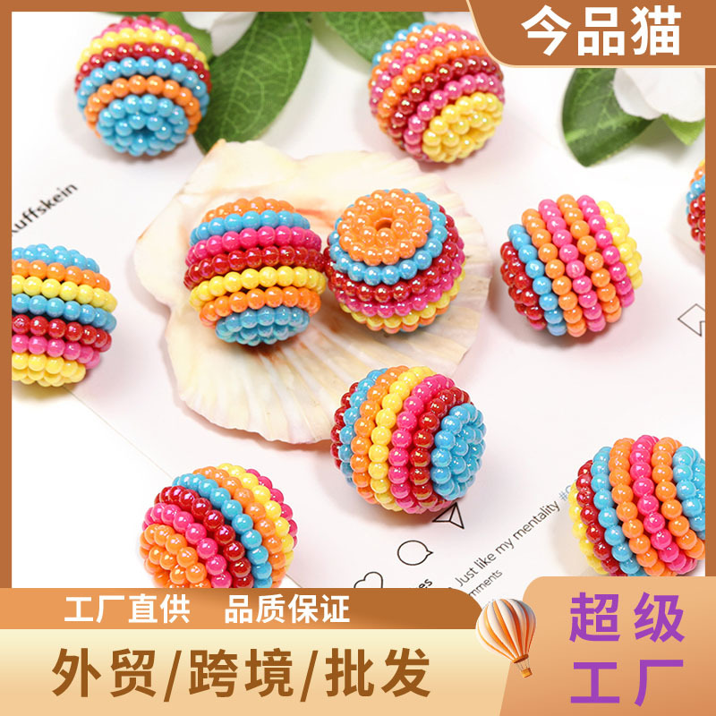 跨境新款DIY手工串珠散珠杨梅彩色拼圆珠亚克力彩色条纹串珠批发