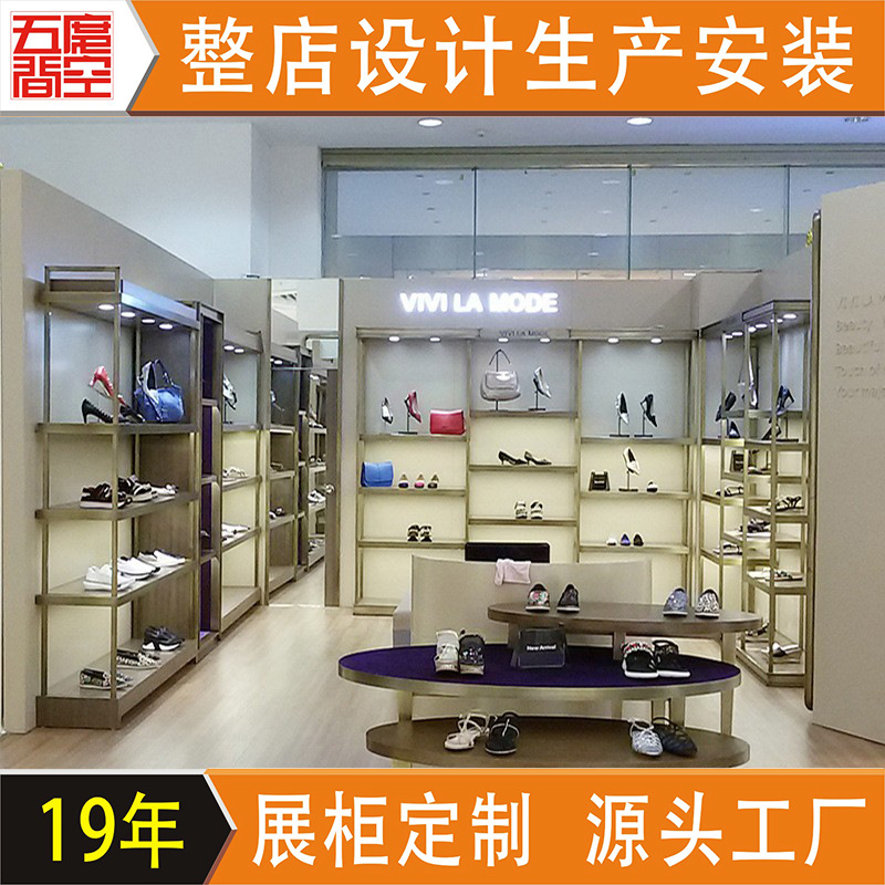ブランド靴専門店展示棚デパートコーナー陳列棚ステンレス製品展示室実木バッグ棚
