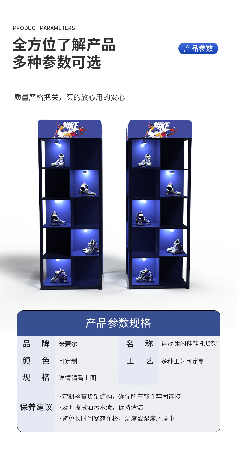 ライト付き高級靴店靴棚ディスプレイラック専門店スポーツシューズディスプレイラックショッピングモールスポーツ用品店ディスプレイラック