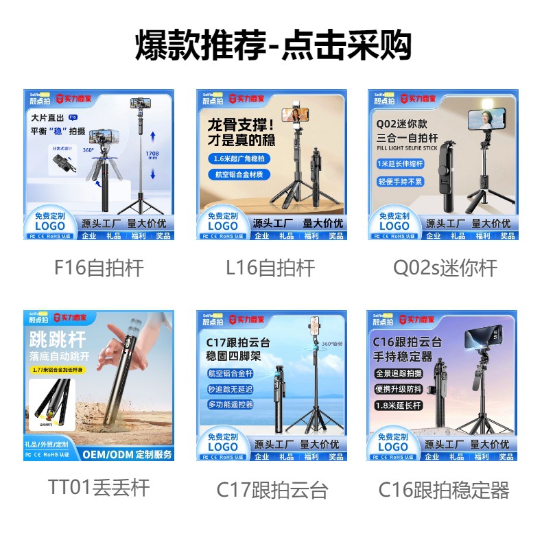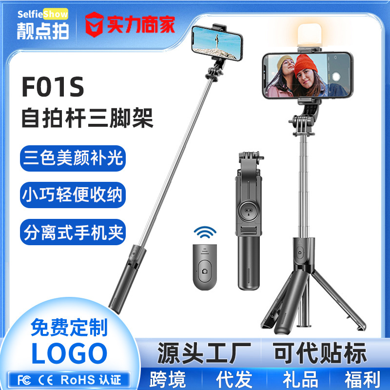 跨境F16自拍杆三脚架蓝牙遥控直播手机支架Selfie stick travel