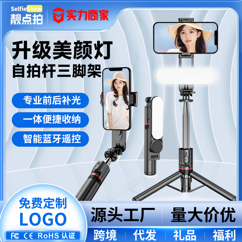 補光灯携帯電話スタンド自撮り棒手ぶれ防止伸縮生放送三脚bluetoothリモコン三色温度L15