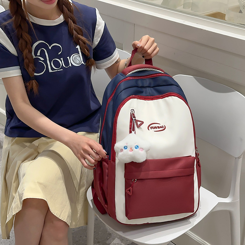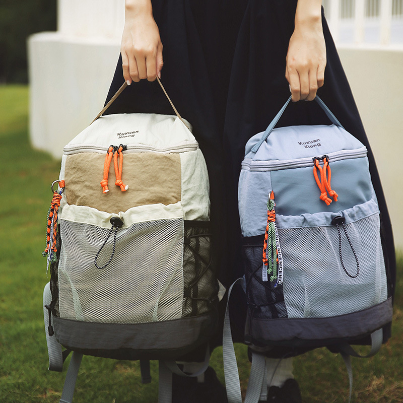 クロスボーダーカラーステッチバックパック2025ニッチトレンドアウトサイクリングバックパック大容量軽量カジュアルスクールバッグ