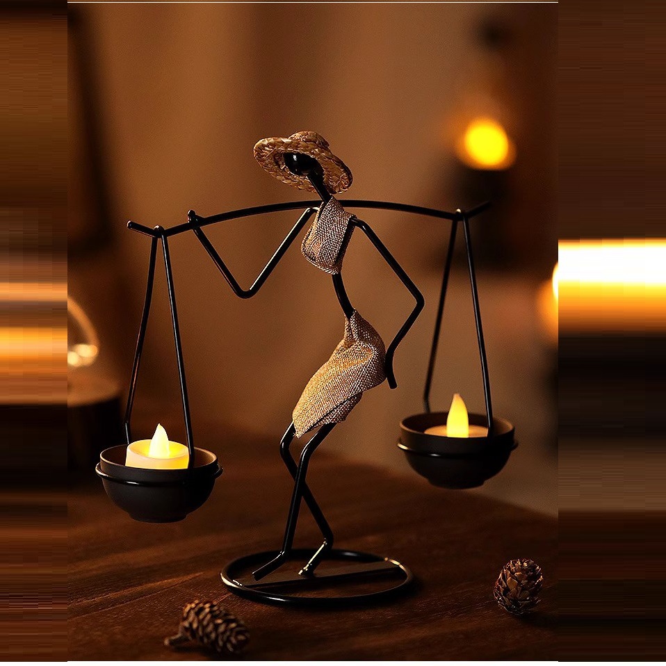 ヨーロッパ風の鉄製の燭台の置物の創意的な個性のカフェステーキレストランのテーブルの装飾品の小さい飾り物