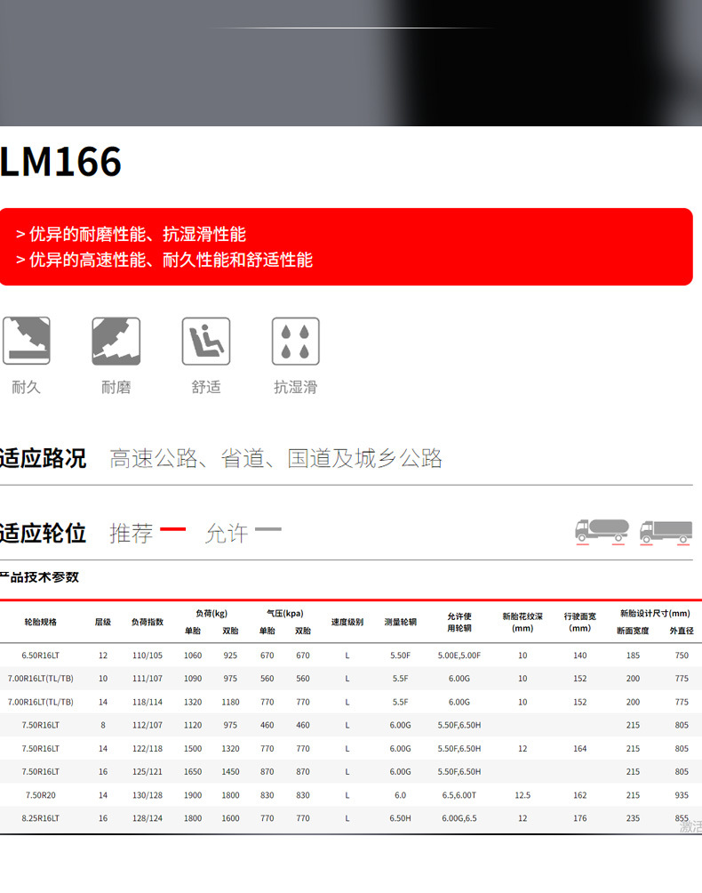 浪馬タイヤlongmark 8.25R20タイヤLM308花柄フルスチールトラック乗馬浪馬タイヤ