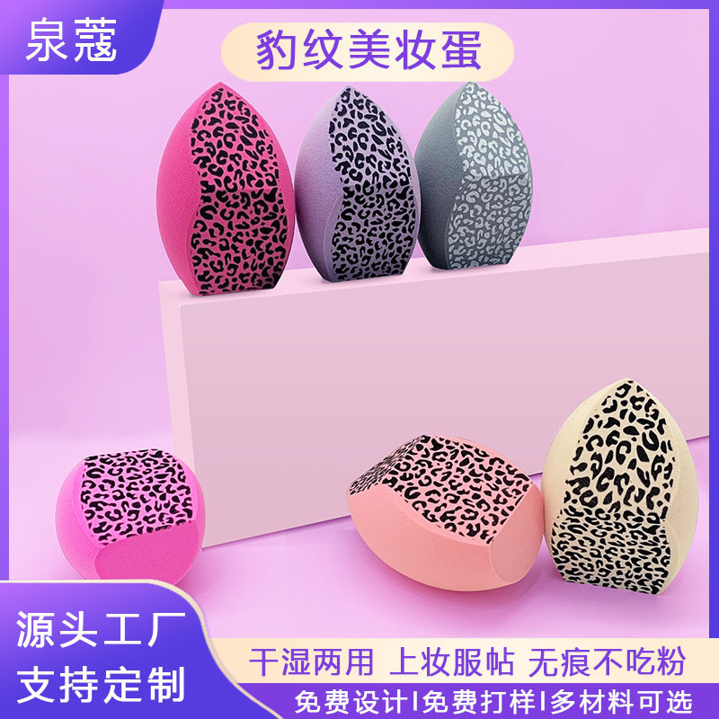 ヒョウ柄スリーナイフカット大胆な卵ネットセレブスポンジ卵ウェットとドライ両用柔らかく肌に優しい特殊形状斜めカット美容ツール
