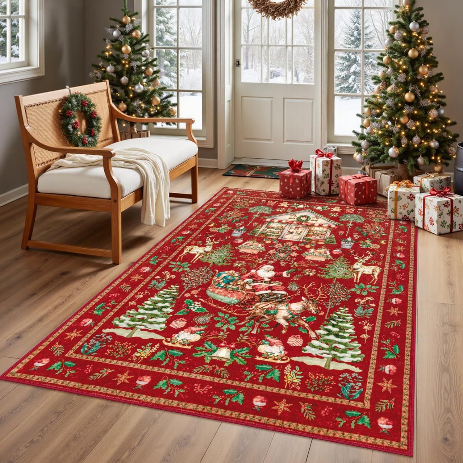 跨境新款圣诞地毯耐脏易打理客厅沙发毯茶几垫节日装饰地毯入户垫
