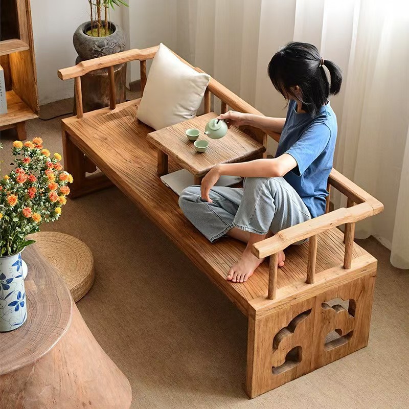 中国風の古いニレ羅漢ベッド家庭用長椅子リビングルーム禅組み合わせソファベッドリクライニング無垢材羅漢ベッド