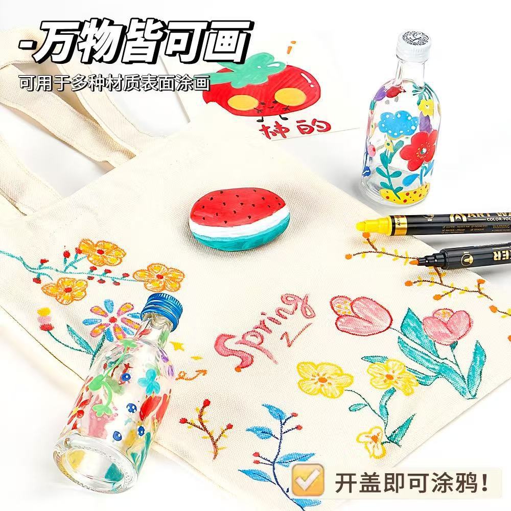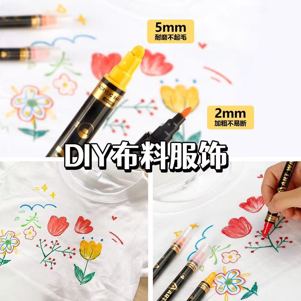双头马克笔DIY布艺服装涂鸦笔学生创意画笔套装水性彩色颜料画笔