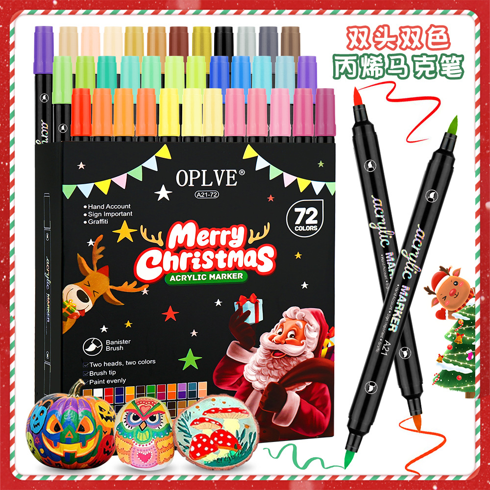 跨境专供双头双色丙烯马克笔套装圣诞72色软头彩绘涂鸦美术绘画笔