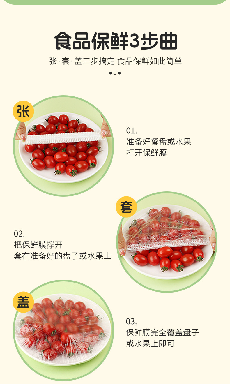 使い捨てラップフィルムカバー 食品グレード 家庭用 フルーツ キッチン 残り物用 伸縮口付き皿カバー フルーツ保存用