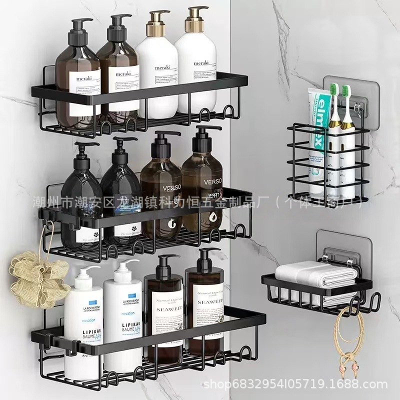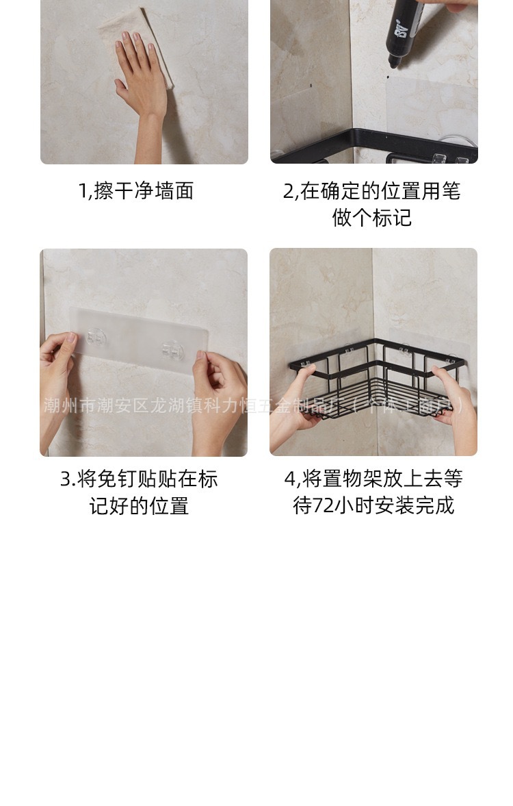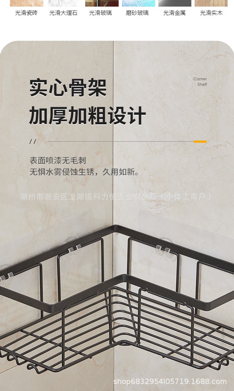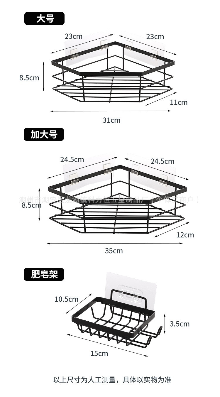跨境免打孔浴室置物架铁艺三角架卫生间厕所洗手间壁挂墙上收纳架