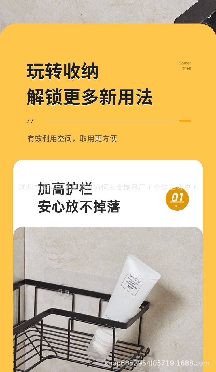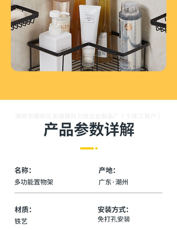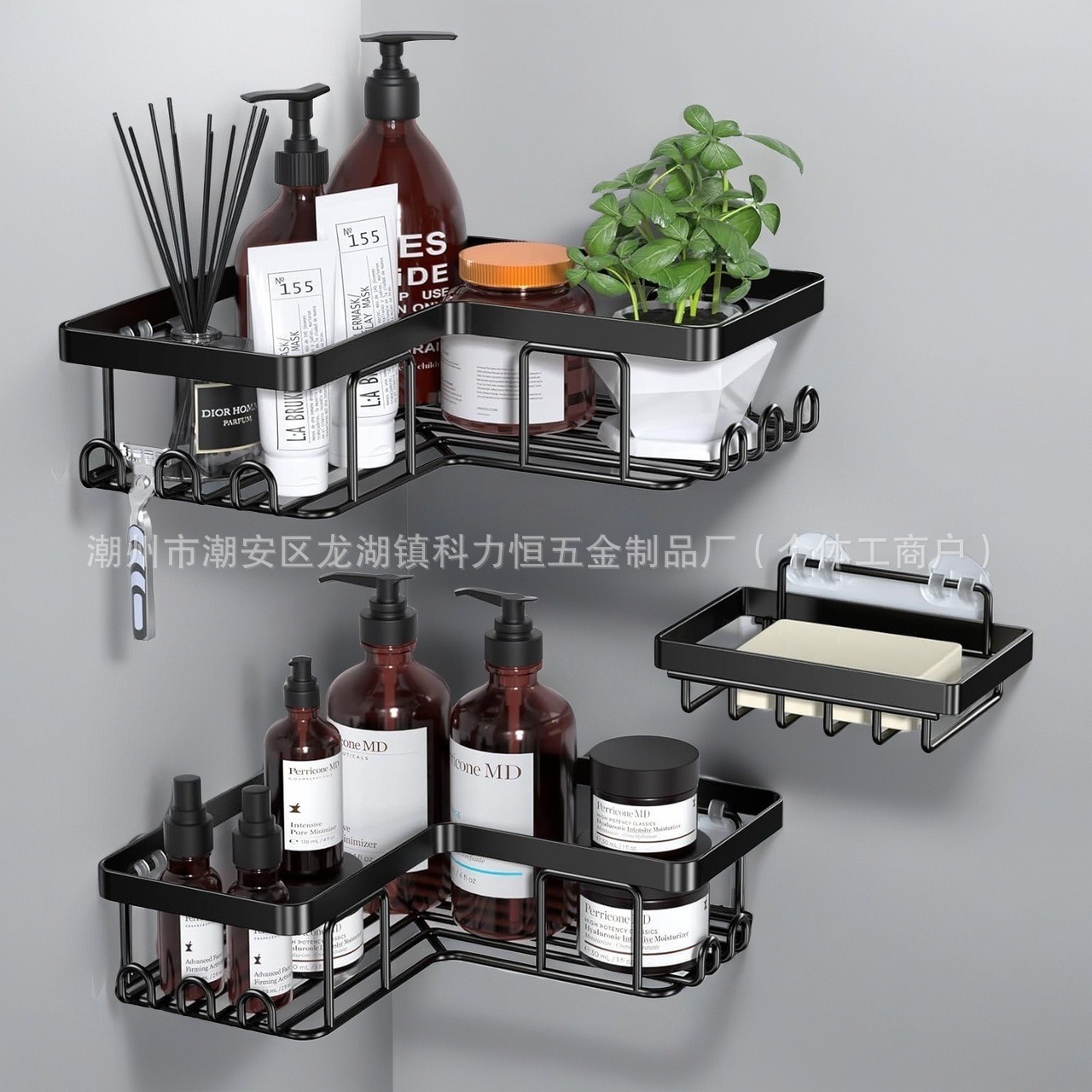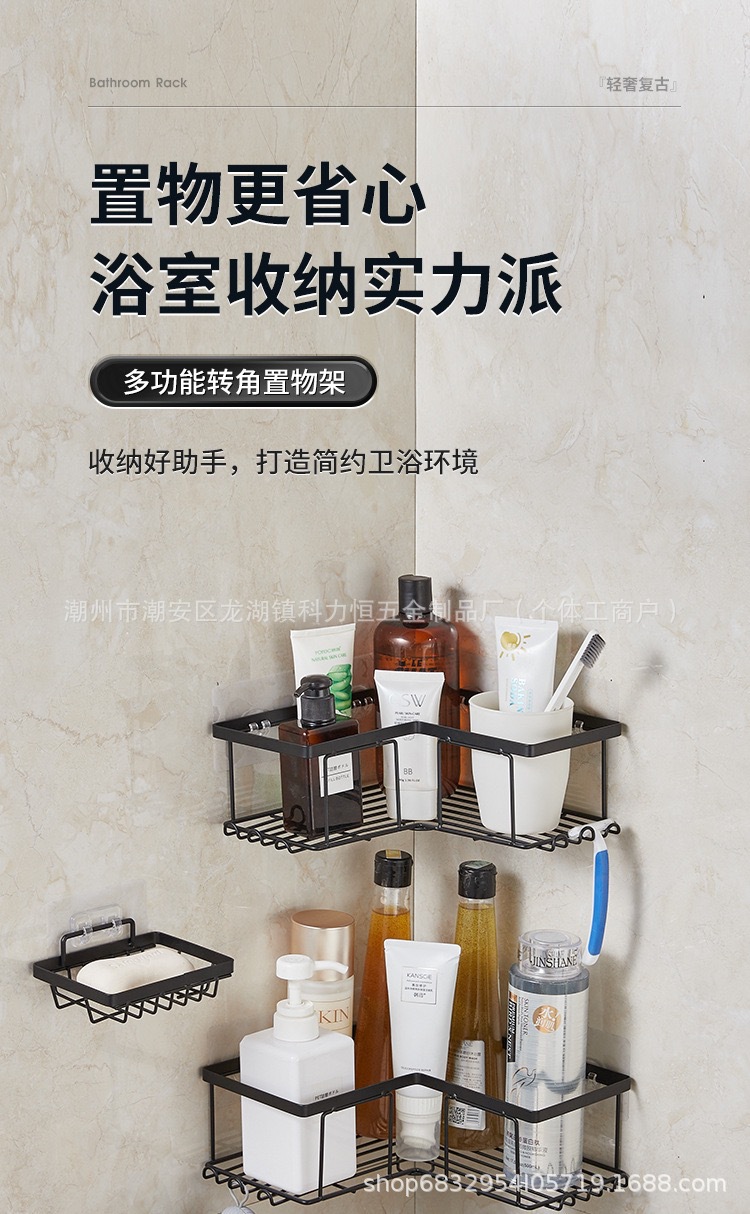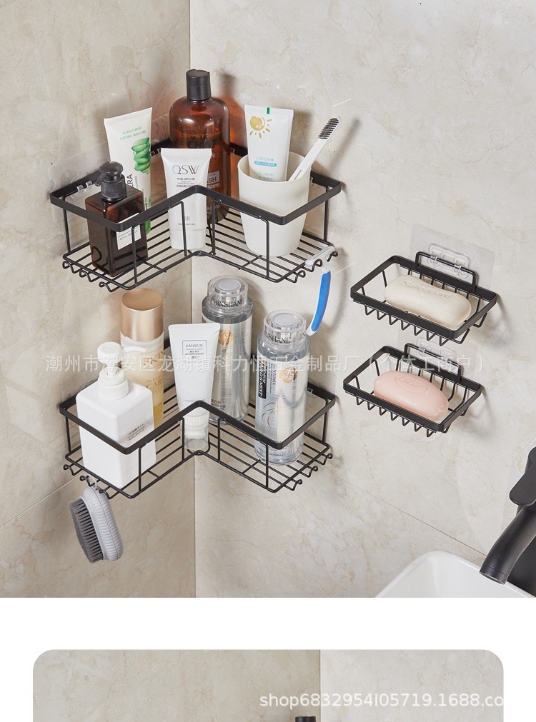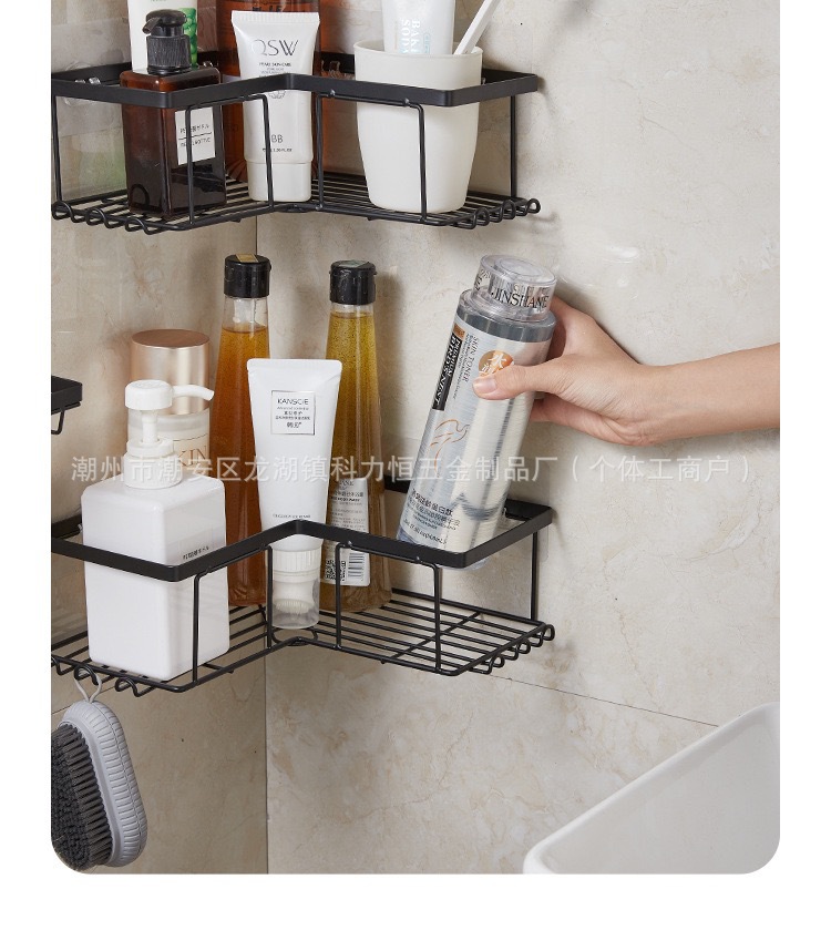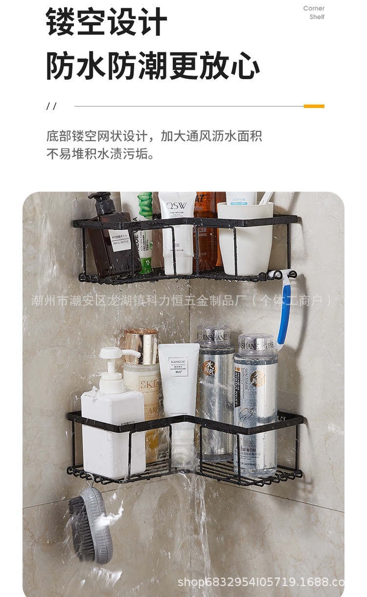 跨境铁艺三角架浴室壁挂式收纳架免打孔卫生间厕所洗漱用品置物架