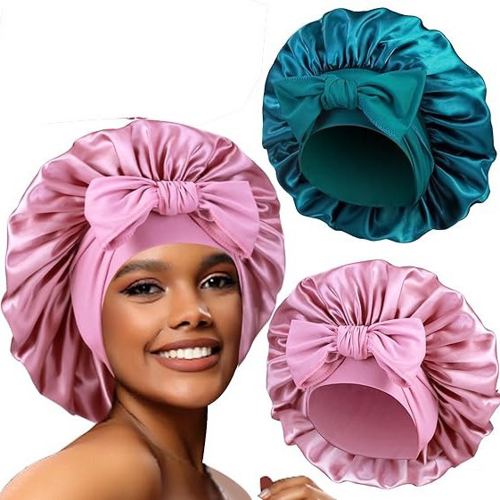 サテン単層弾力ストラップが長くて寝ている帽子の大きいサイズの色の帽子の弾力の広い辺のシャワーキャップの女性の純色の化学療法