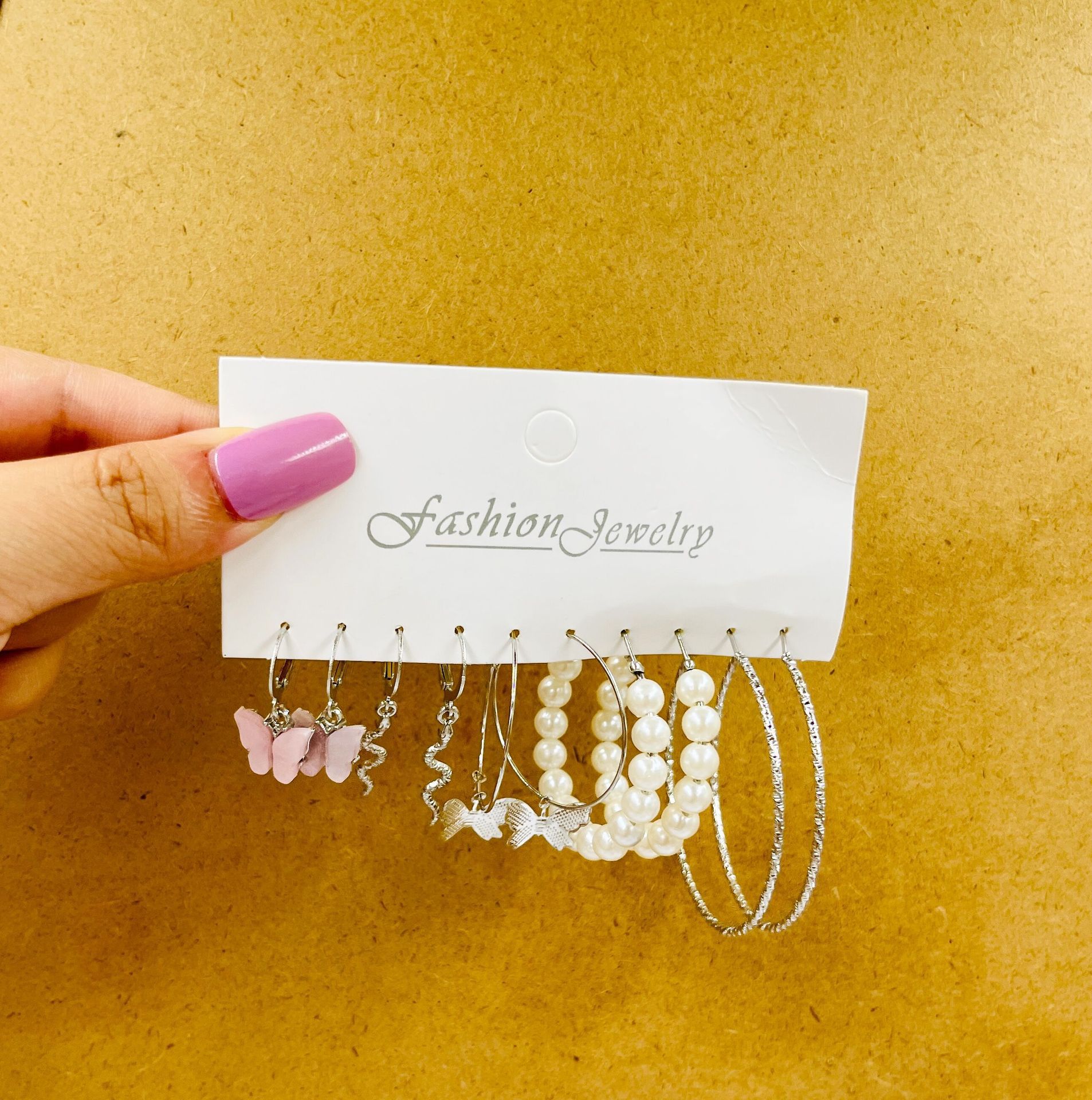 ヨーロッパとアメリカンスタイルのメタルイヤリングスクエア幾何学イヤリングレトロパールイヤリングヘップバーンスタイルイヤリングセット6点セット