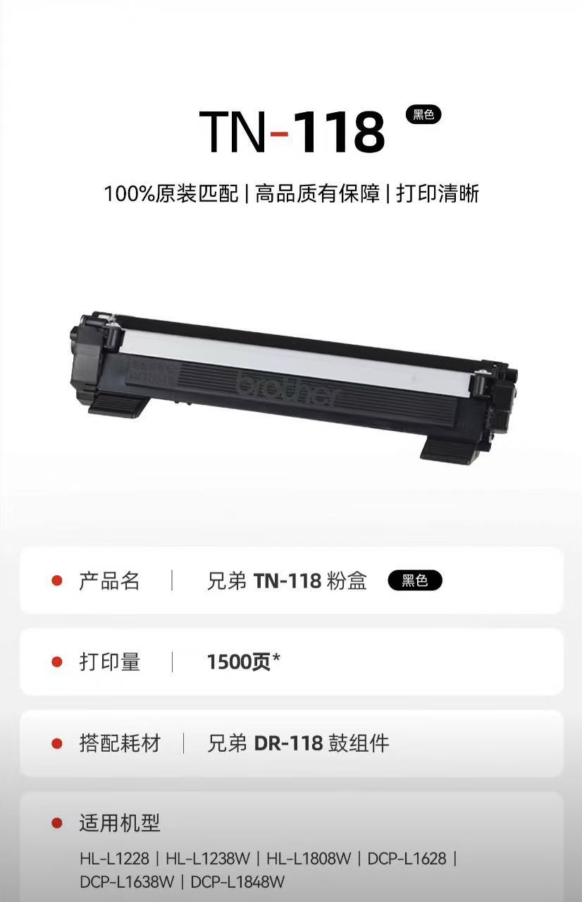 オリジナルブラザー TN118 パウダーカートリッジ L1638W/L1848W/L1228/L1238W/L1808W DR118 トナーカートリッジ