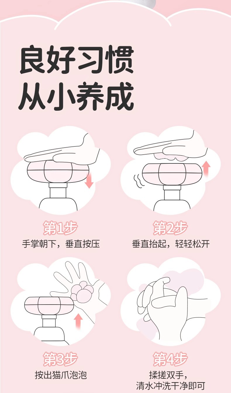 Runben 子供用バブル抗菌クレンジングハンドサニタイザー猫の爪ミルクフォーム楽しくてマイルドで刺激がなく、洗濯後の締め付け感なし